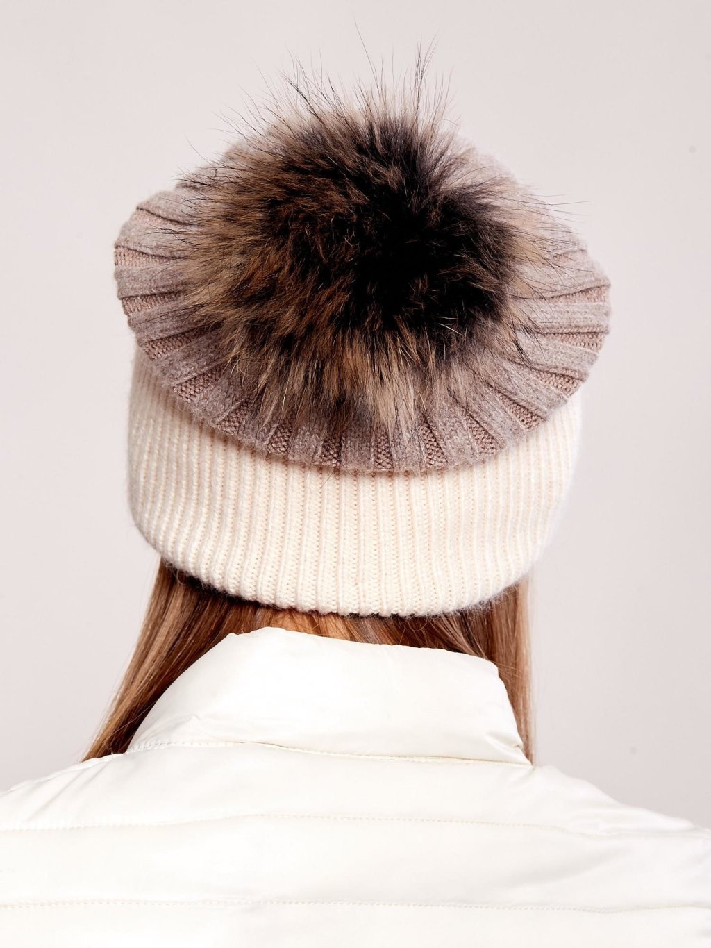 Krémovo-hnedá dámska čiapka s brmbolcom