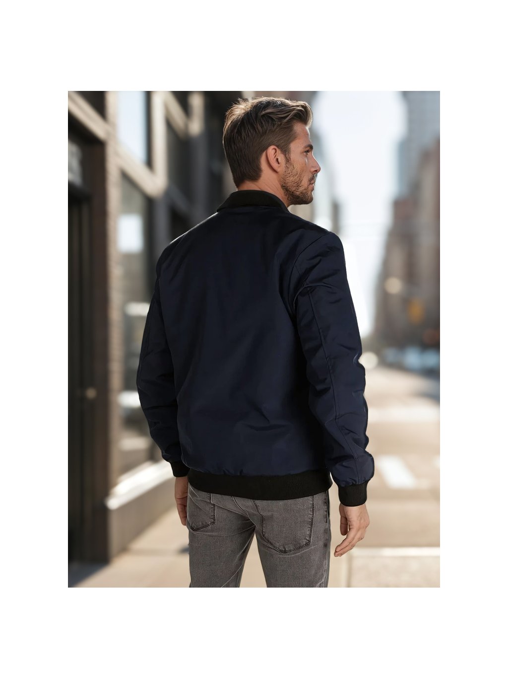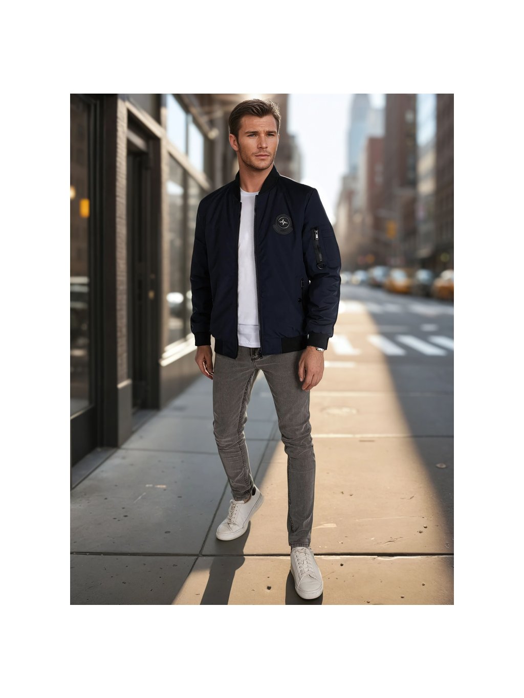 Tmavomodrá pánska bombera s vreckom na rukáve