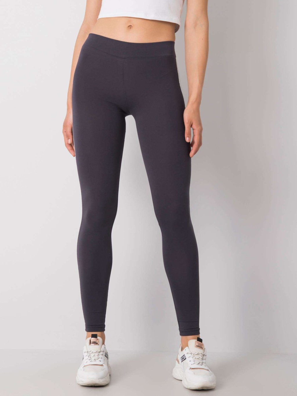 Tmavo šedé dámske legíny s pruhom