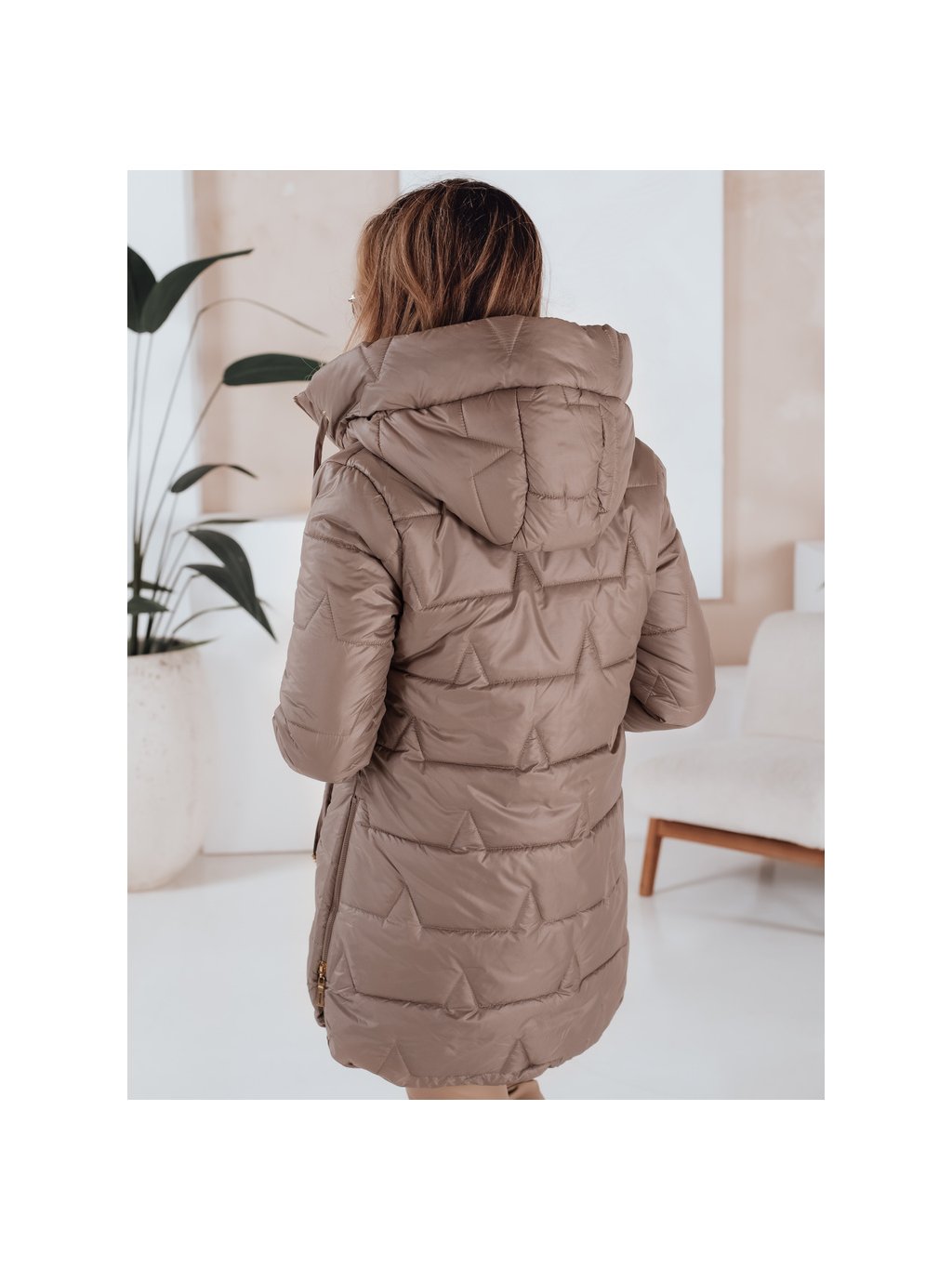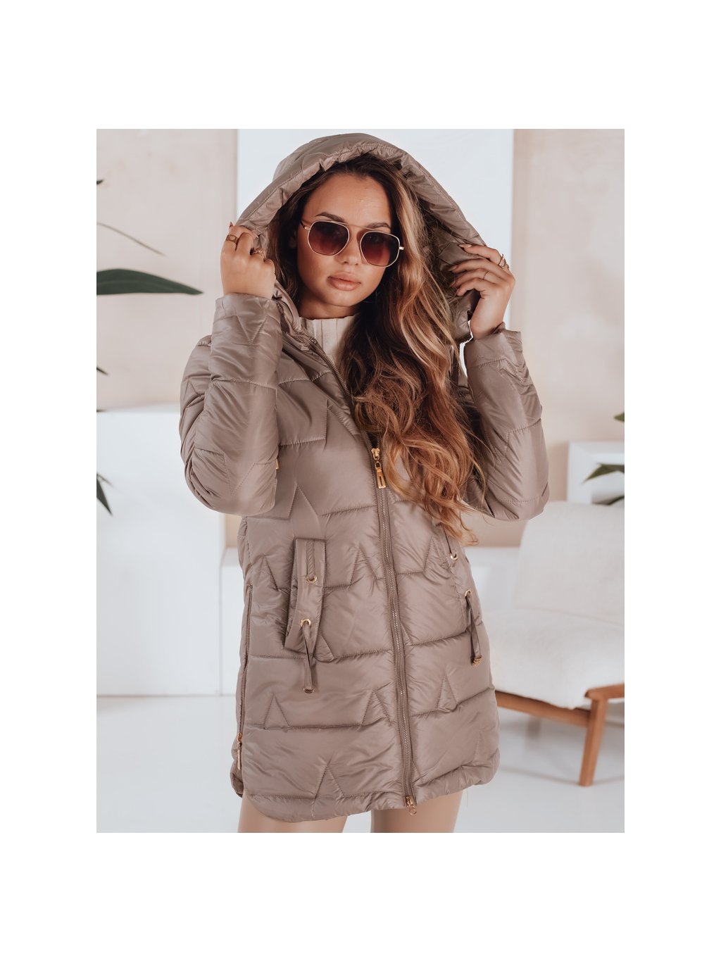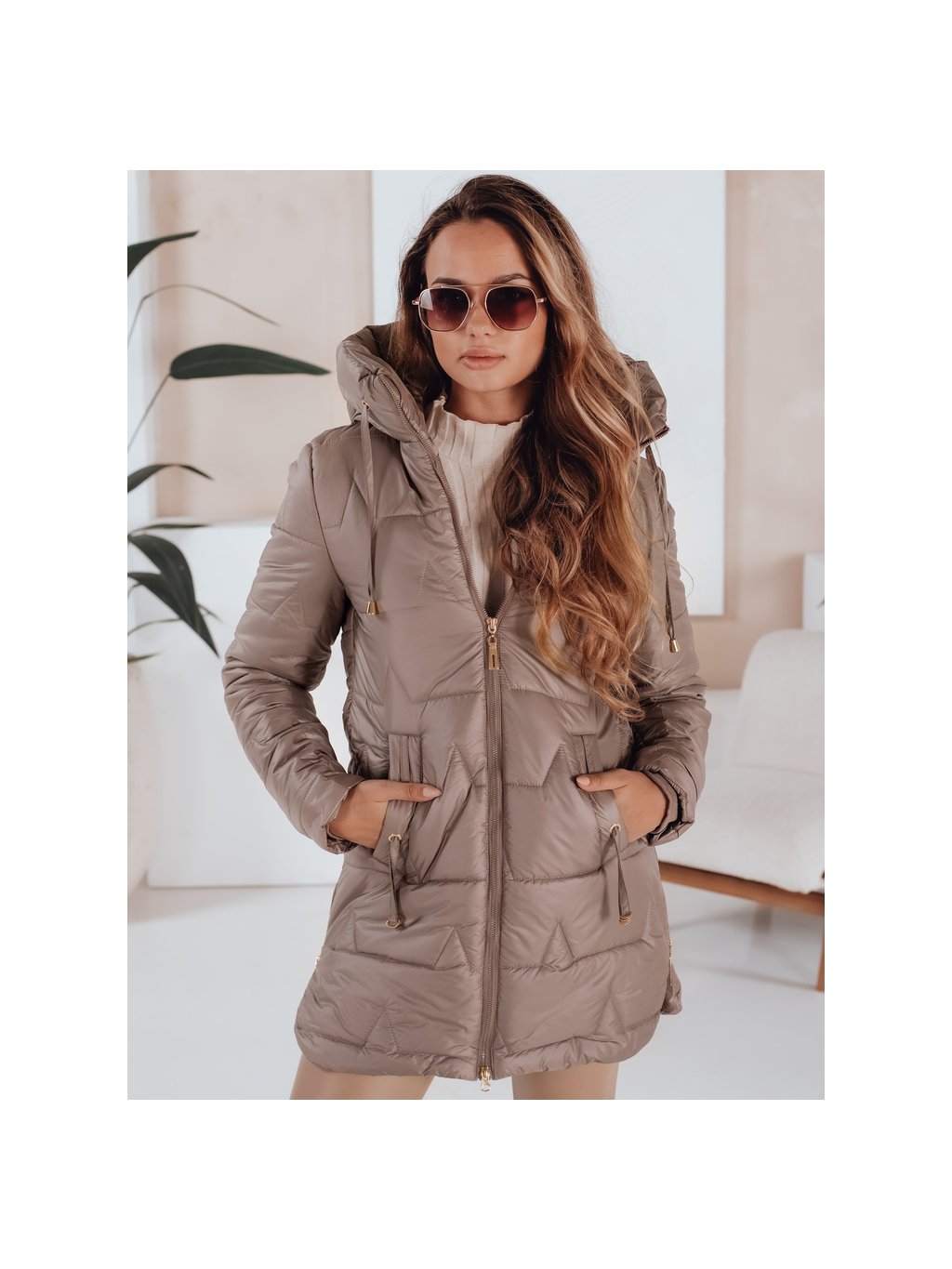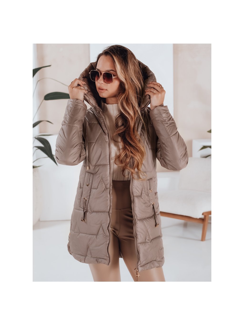 Tmavobéžová dámska prešívaná zimná bunda s kapucňou