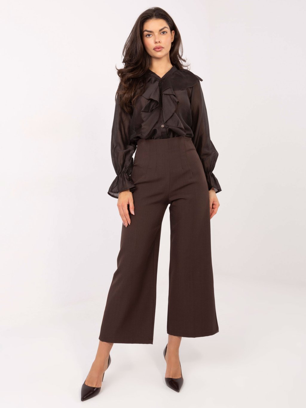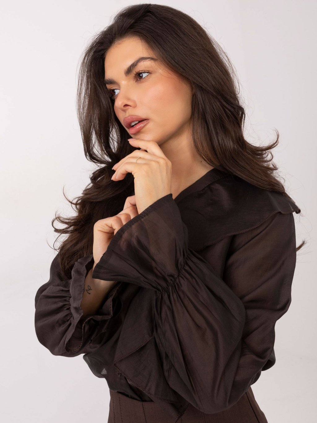 Tmavohnedá dámska priesvitná košeľa s volánom