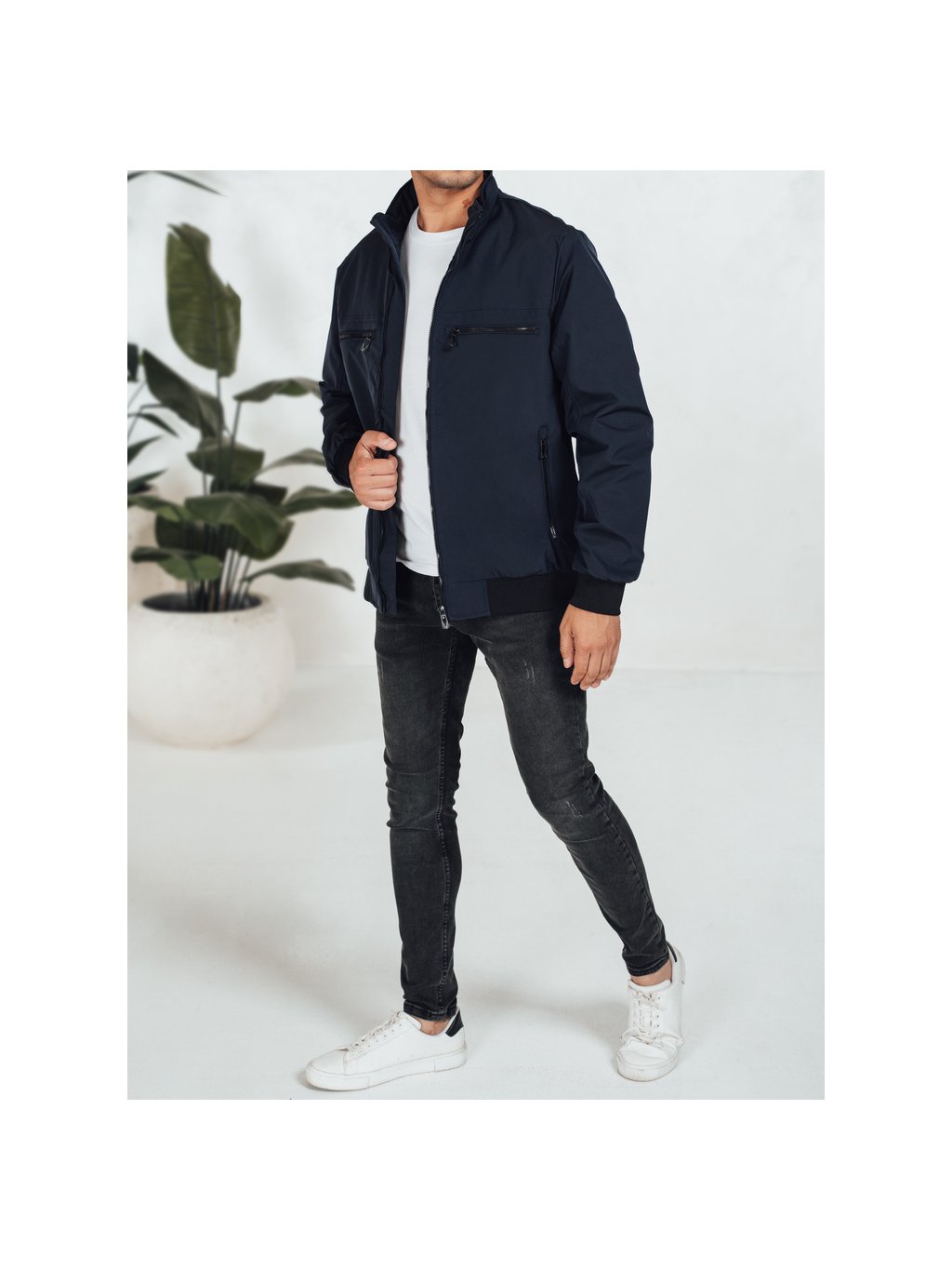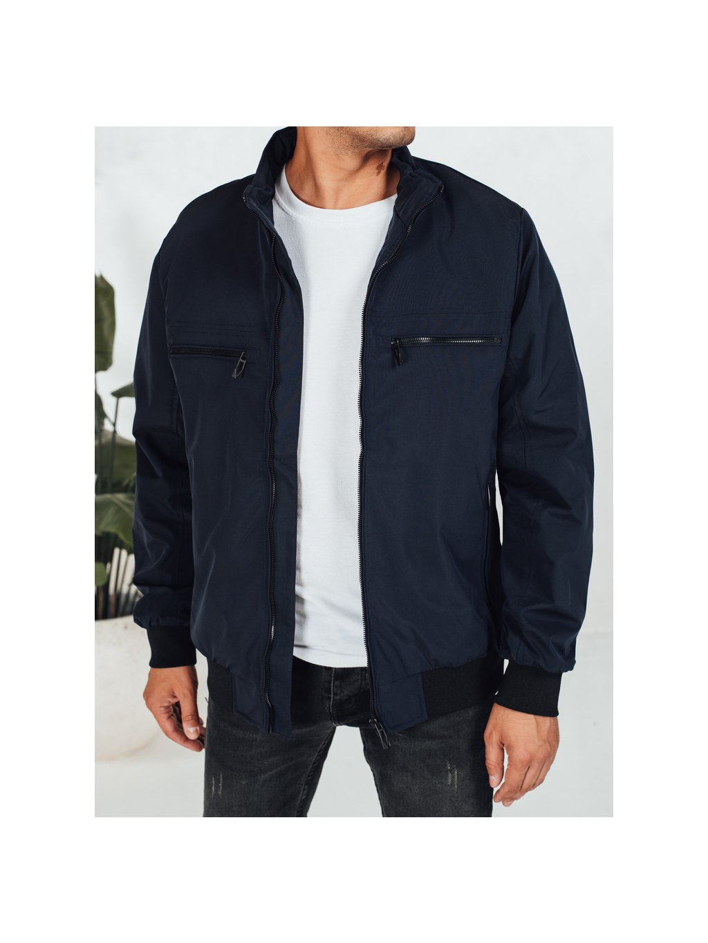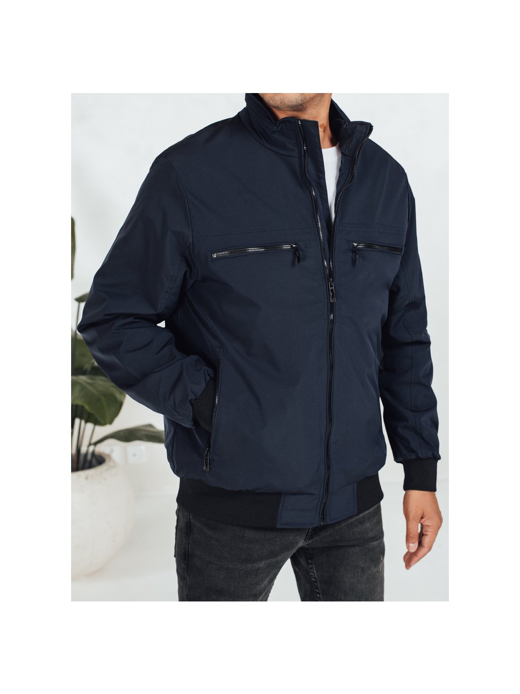 Tmavomodrá pánska bombera so zipsami