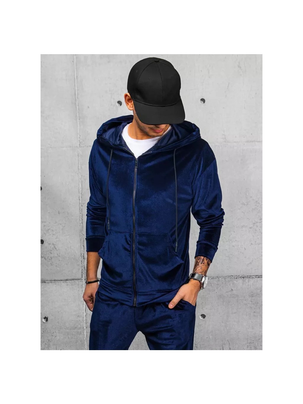 Tmavomodrá velúrová mikina s kapucňou a na zips