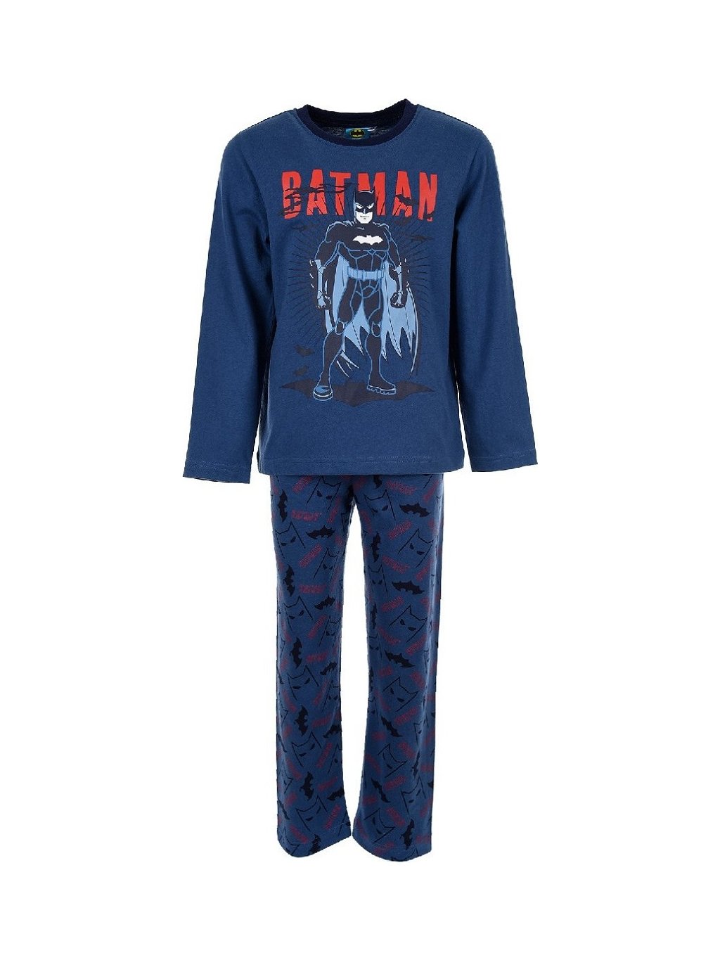 - chlapčenské pyžamo s veľkým motívom Batmana na hrudi a drobnými potlačami na nohaviciach