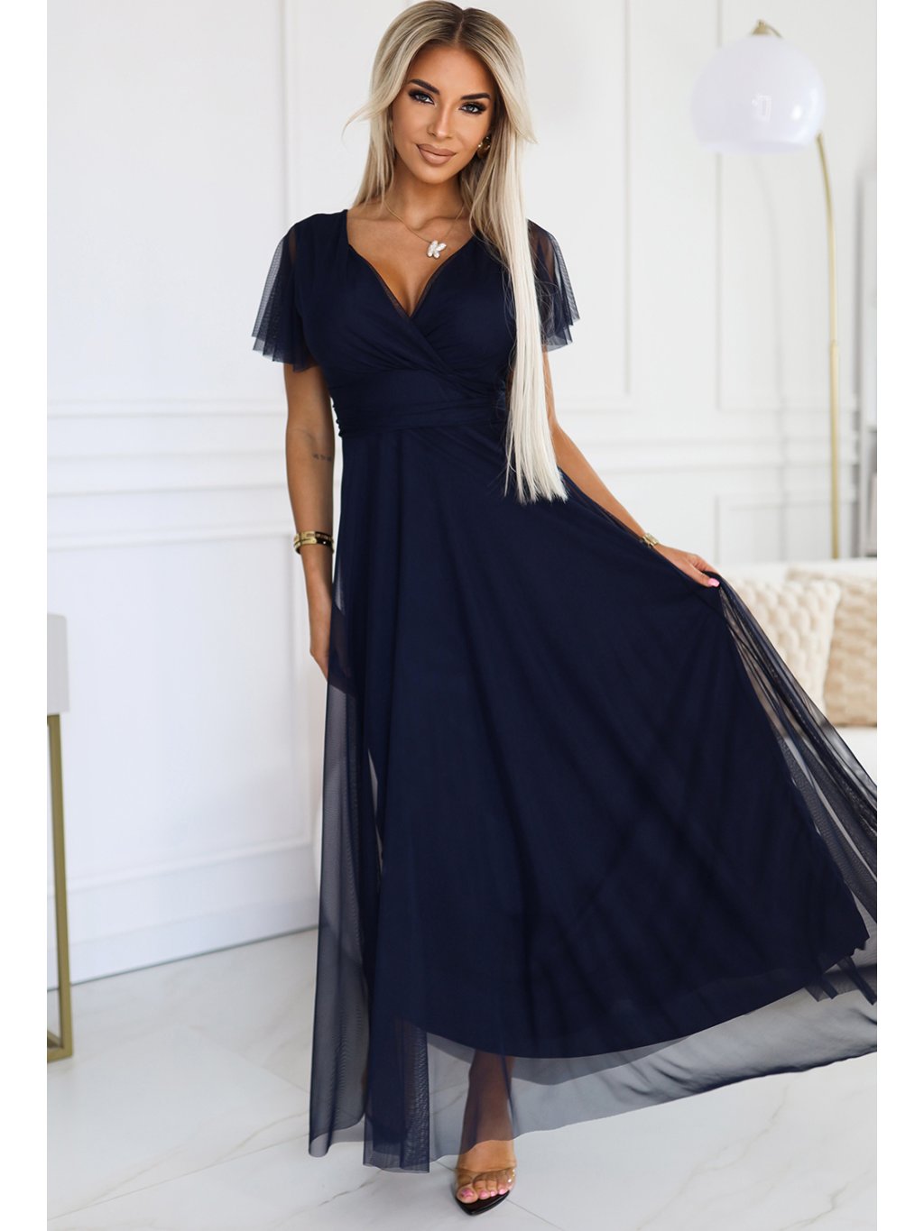 Tmavomodré dlhé šaty NASTIA