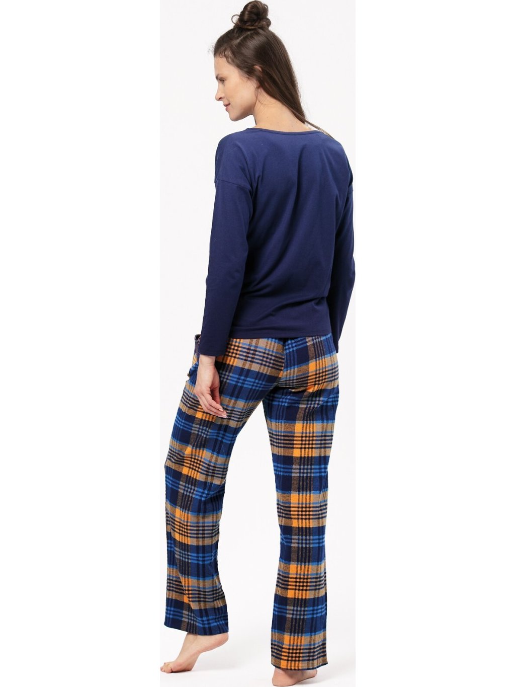 Tmavomodré flanelové pyžamo s károvanými nohavicami Key Fran