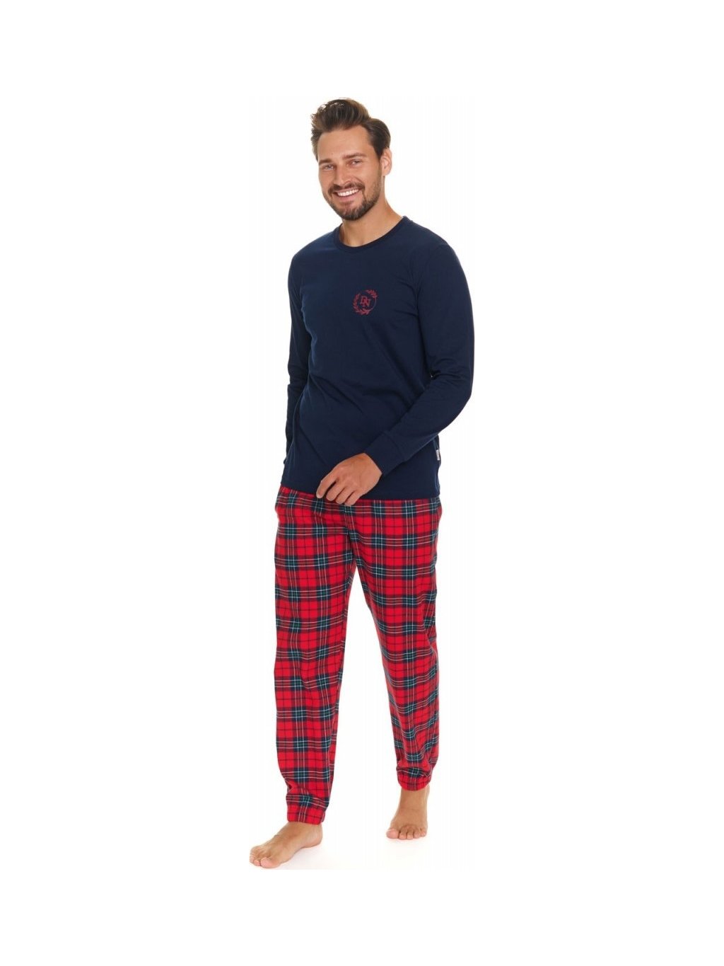 Tmavomodré pánske pyžamo s károvanými nohavicami Doctor Nap