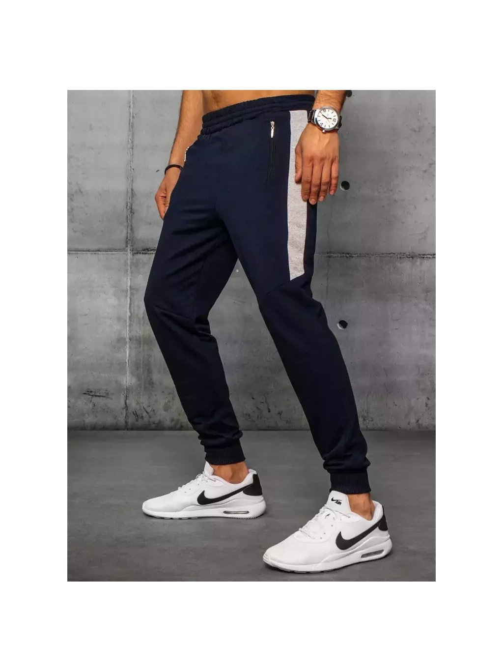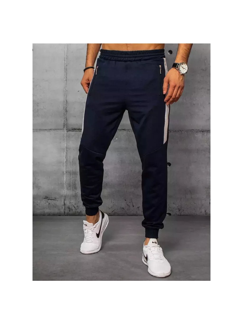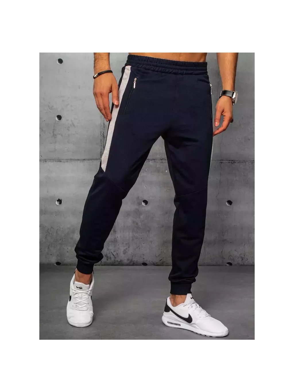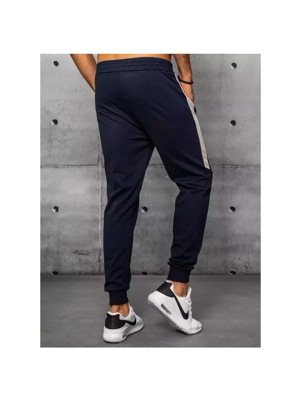 Tmavomodré pánske tepláky s pruhmi