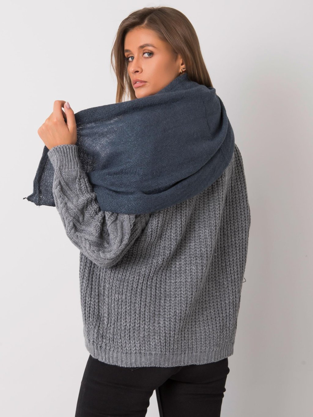 Tmavomodrý háčkovaný šál