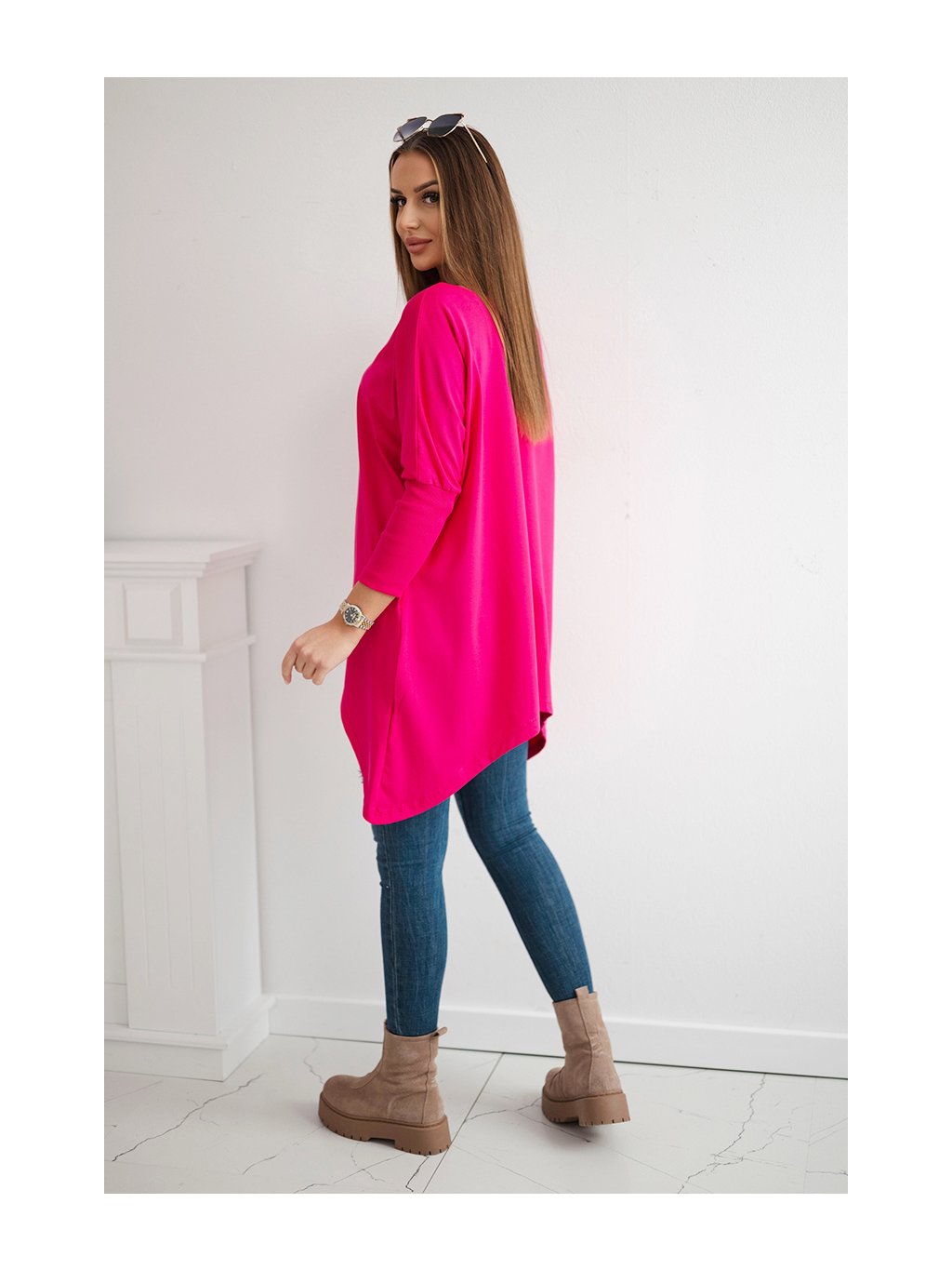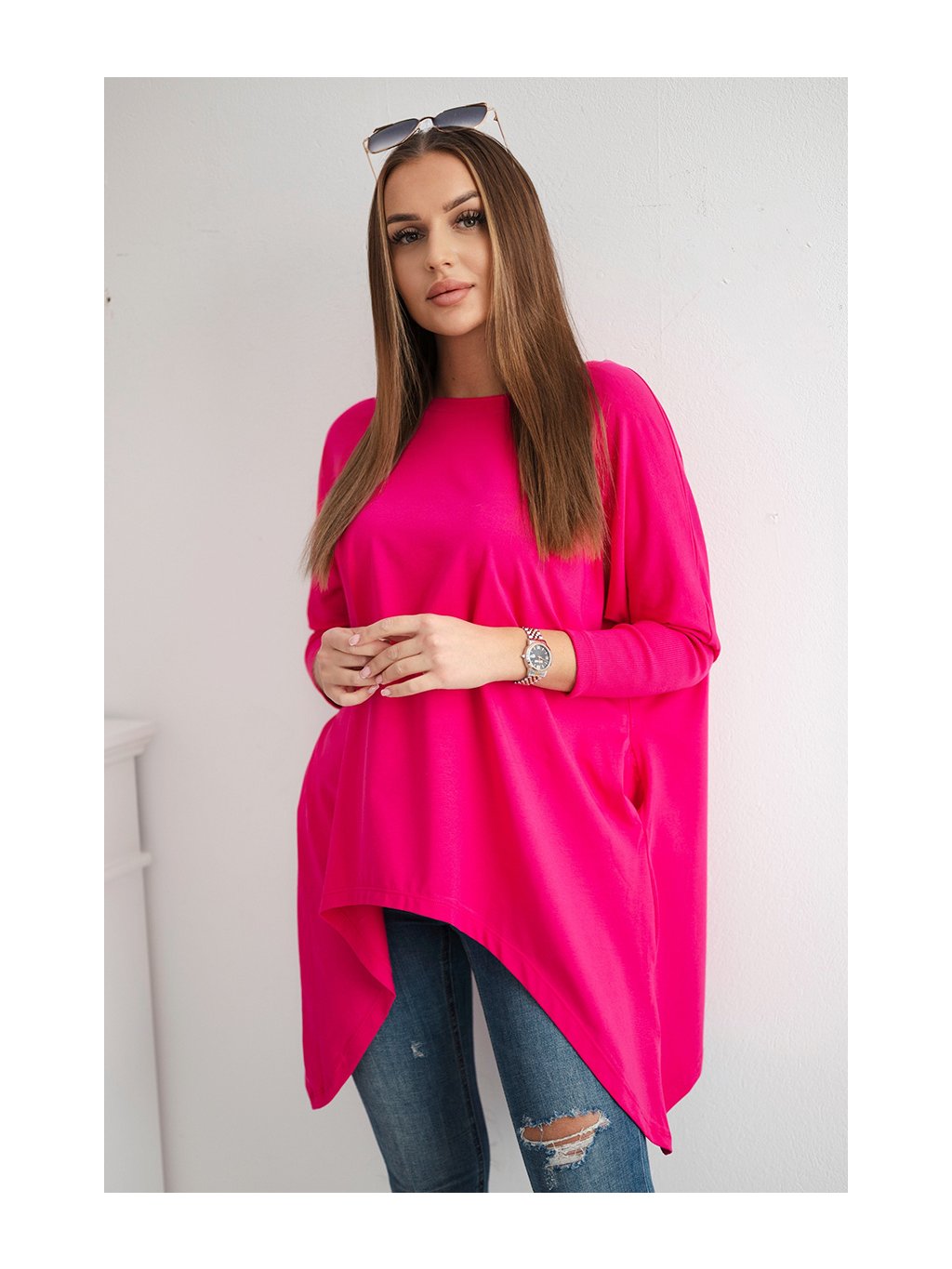 Tmavoružová asymetrická oversize blúzka