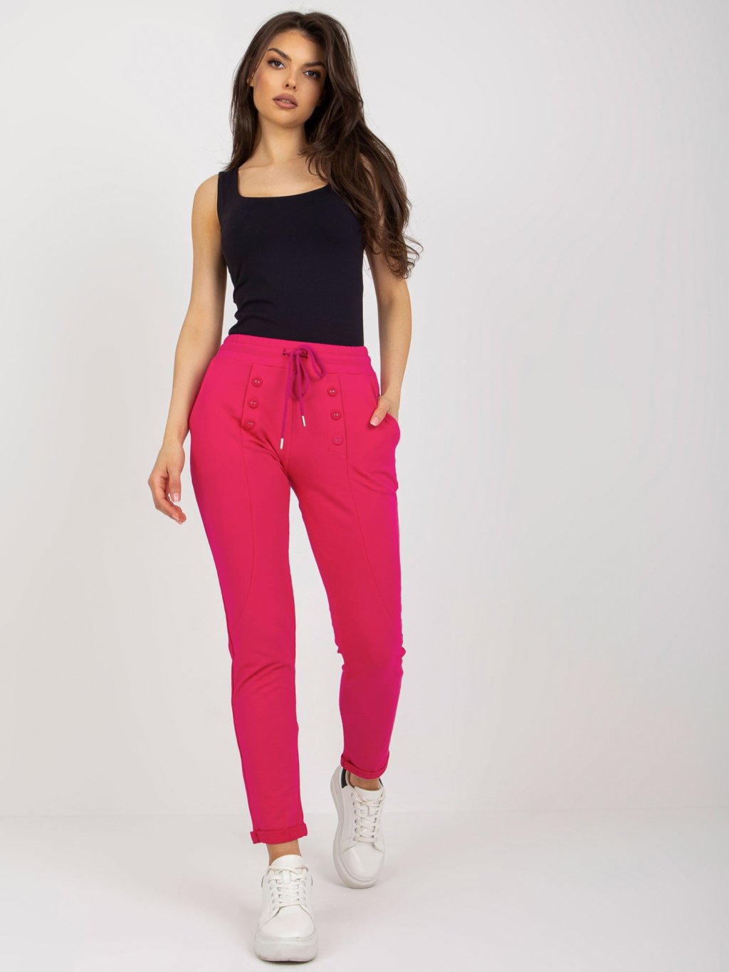 Tmavoružové dámske tepláky s ozdobnými gombíkmi