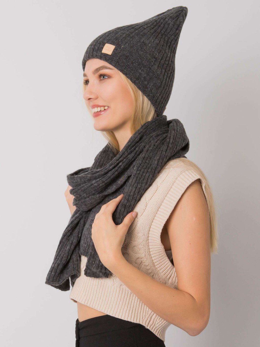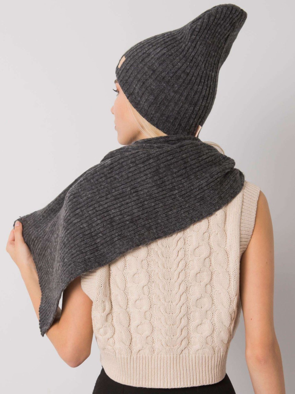 Tmavo sivá sada šálu a čiapky