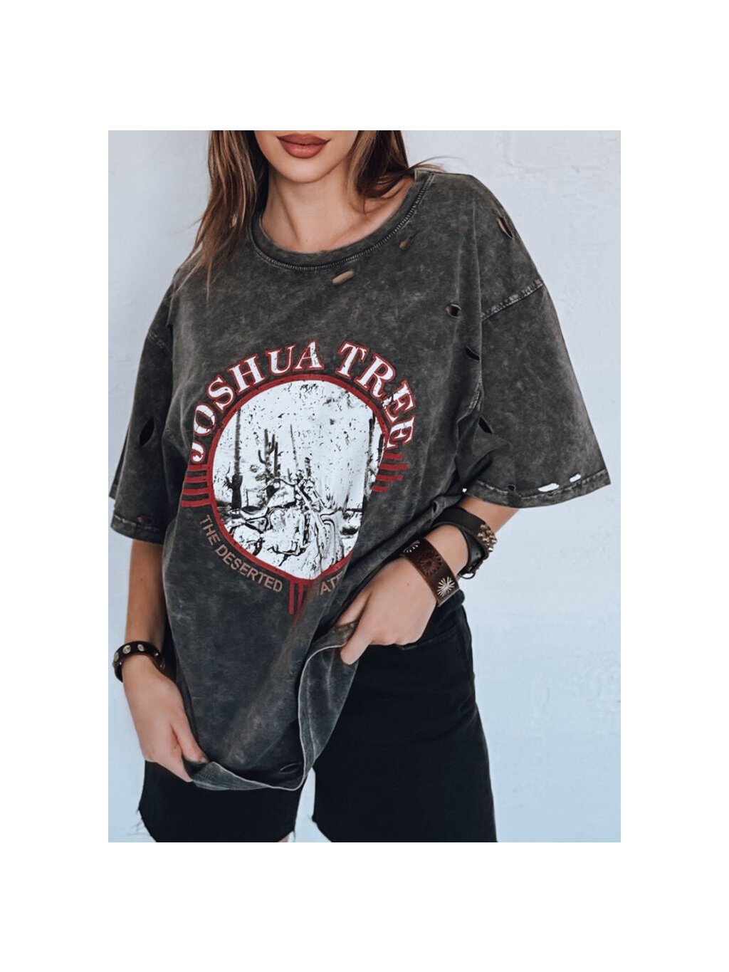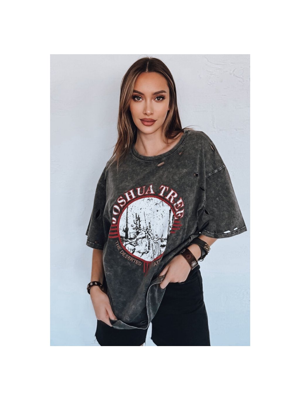 Tmavosivé oversize tričko s potlačou JOSHUA
