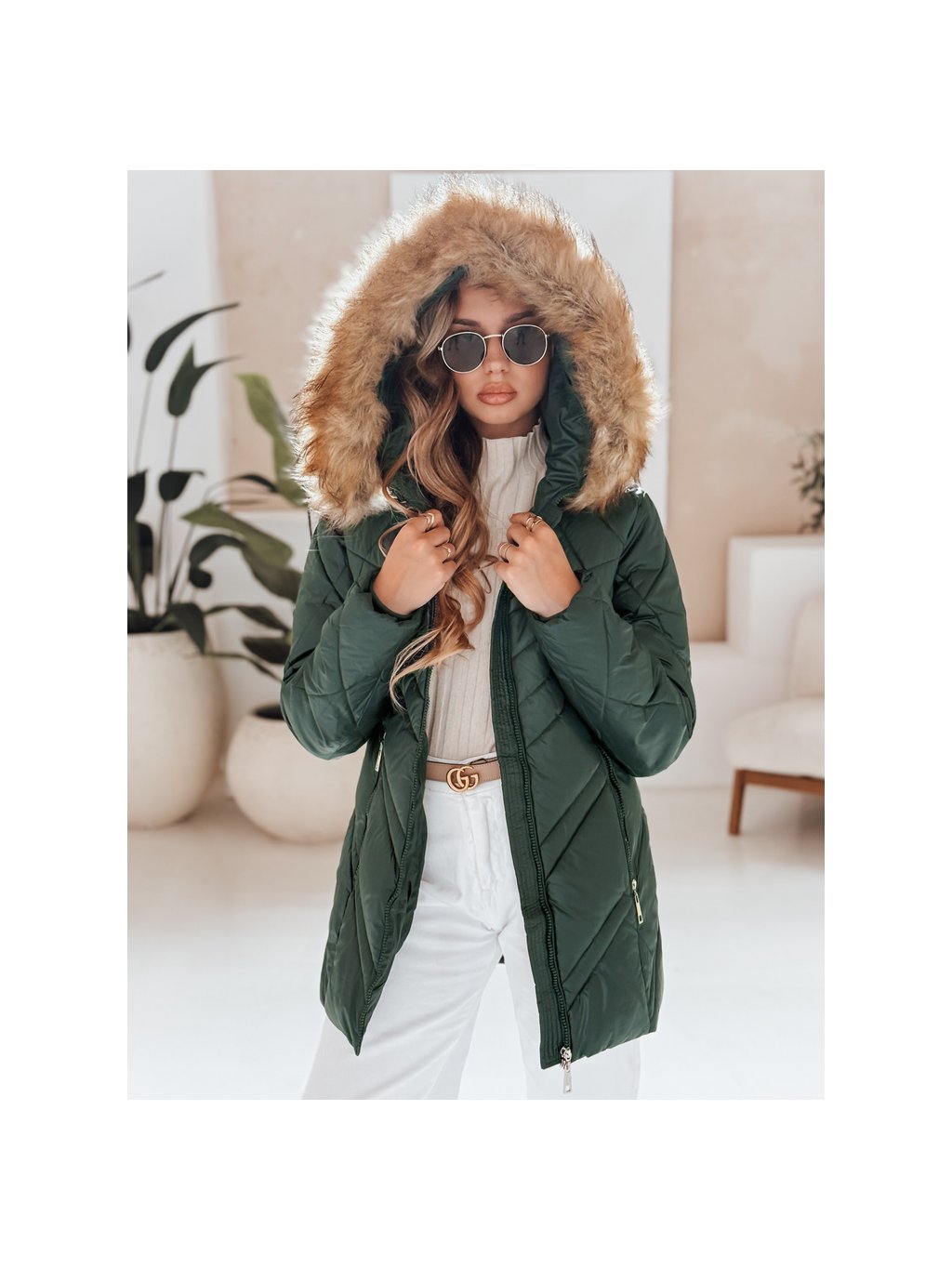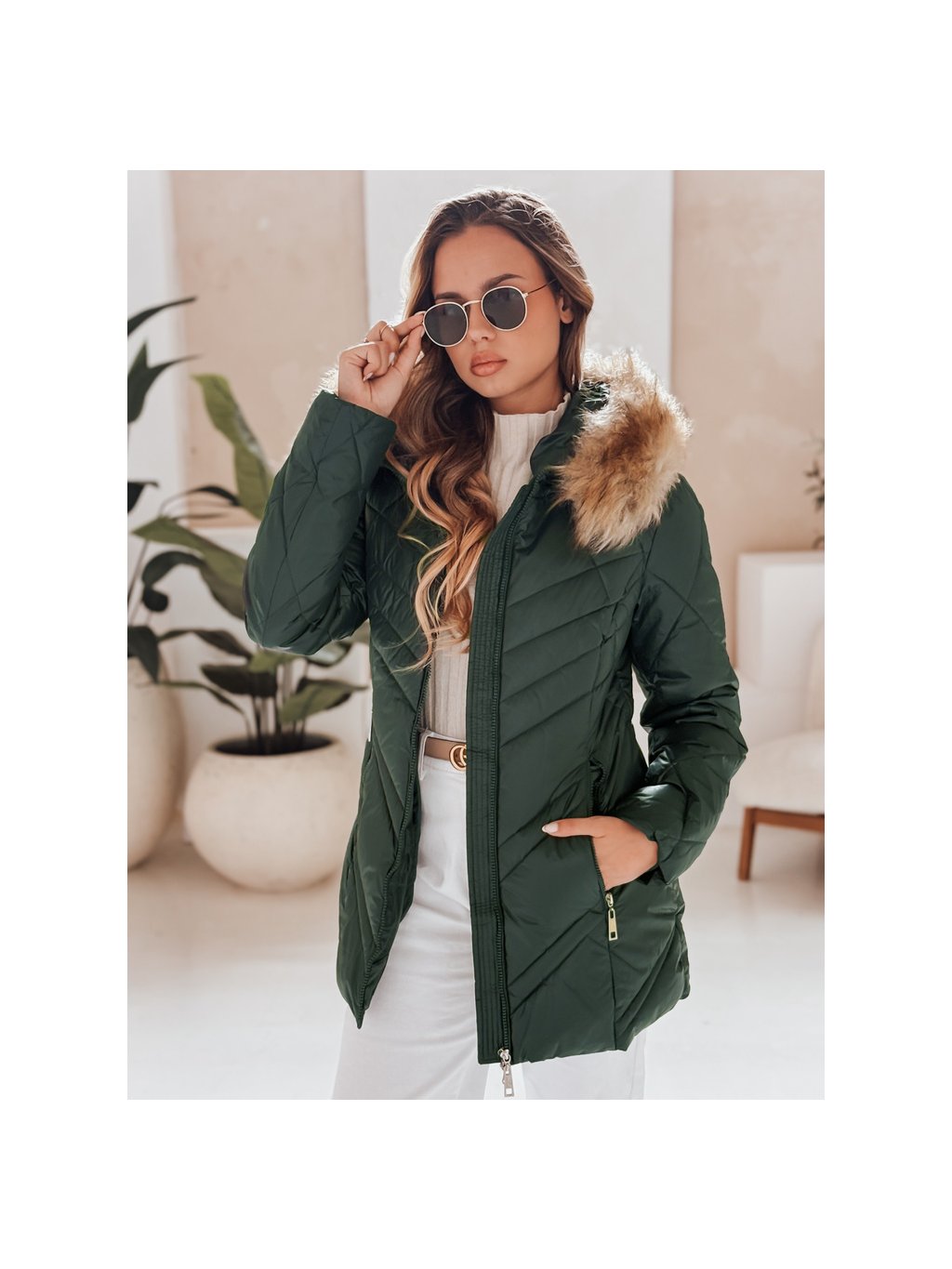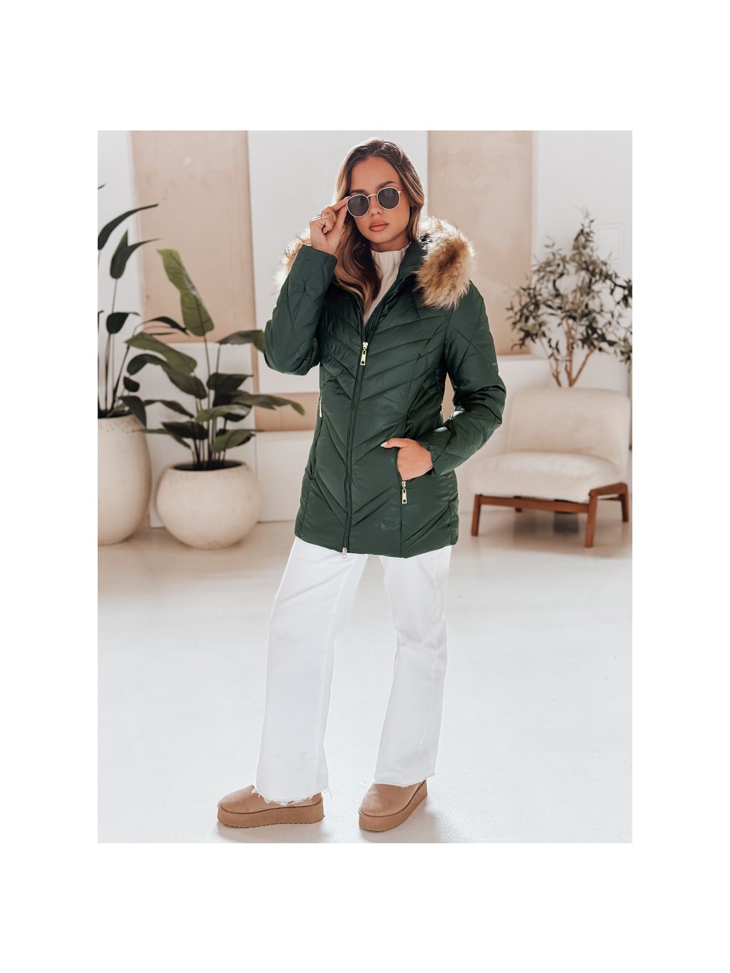 Tmavozelená lesklá zimná bunda SOLARIS
