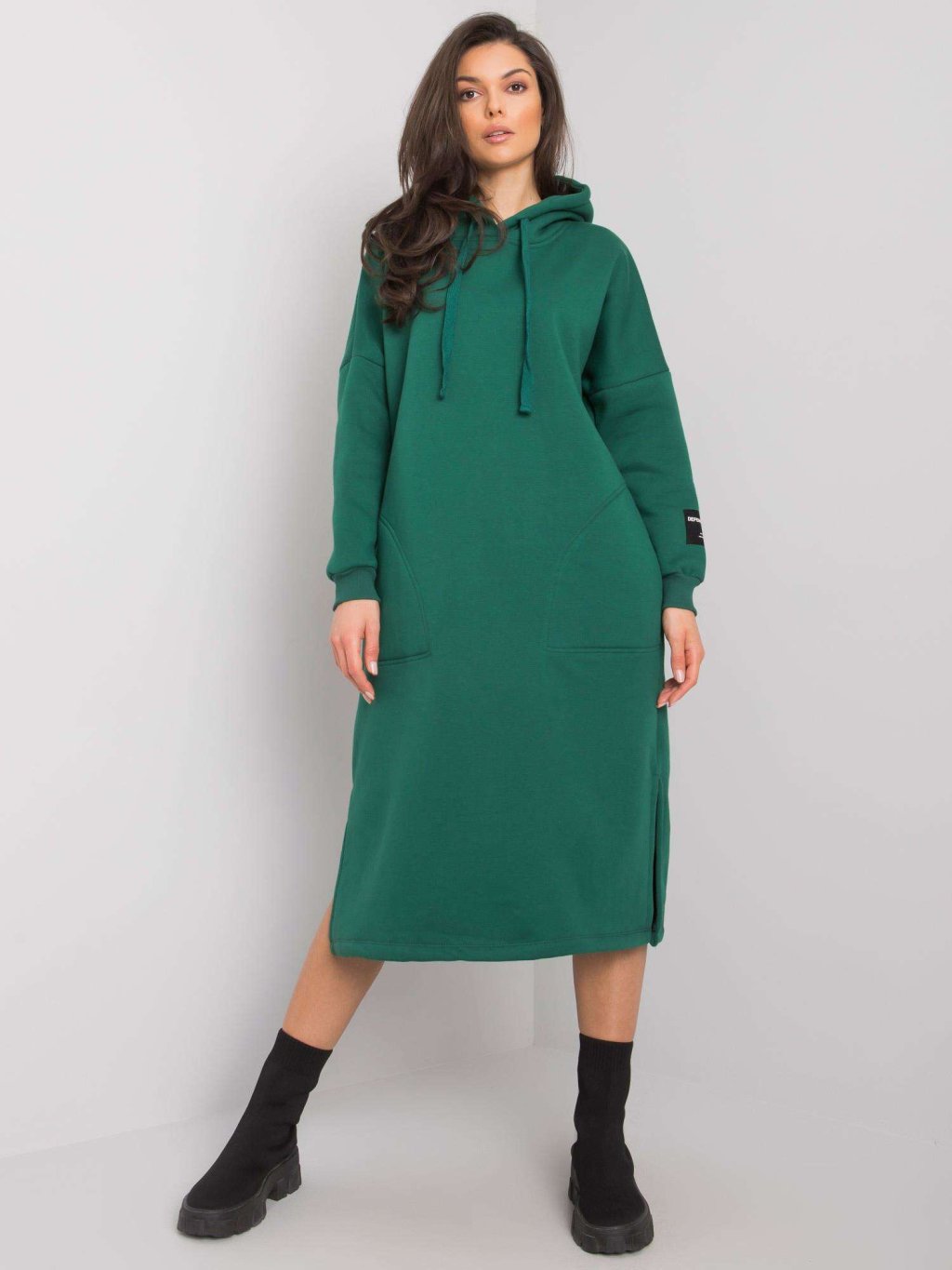 Tmavozelené dámske dlhé mikinové šaty s kapucňou