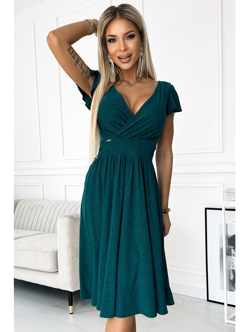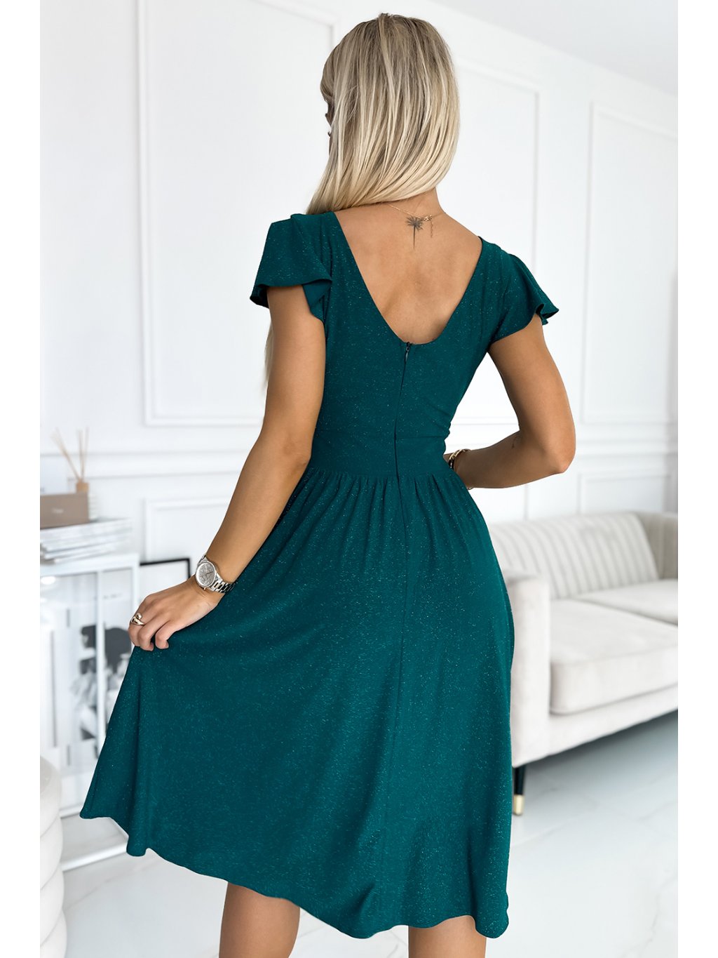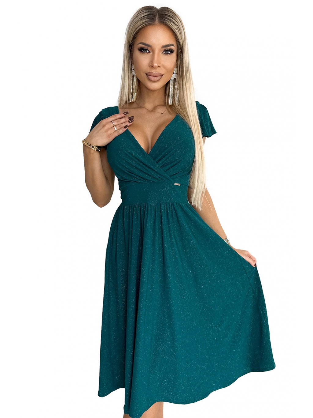 Tmavozelené trblietavé midi šaty MATYLDA