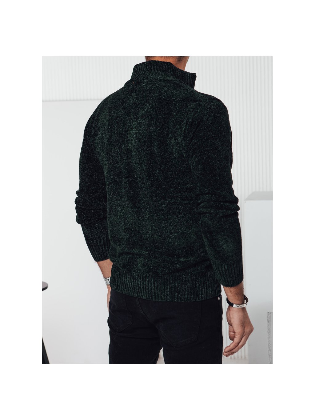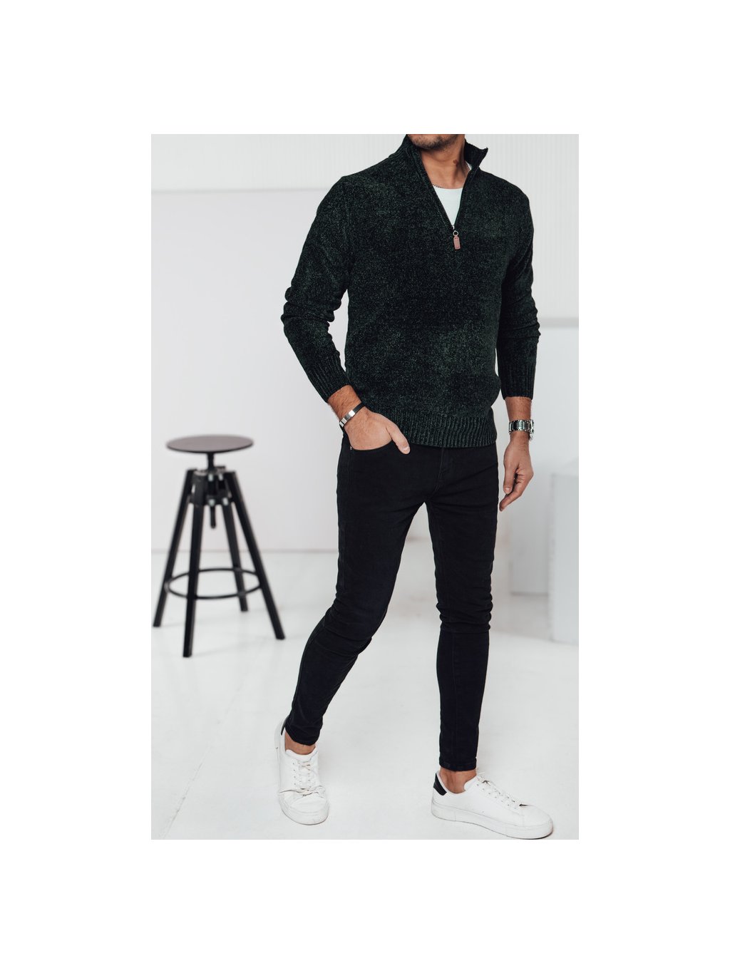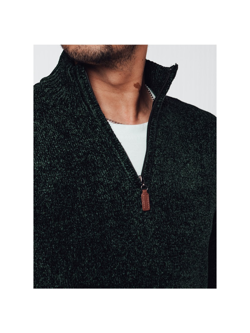 Tmavozelený pánsky štýlový sveter so zipsom pri golieri