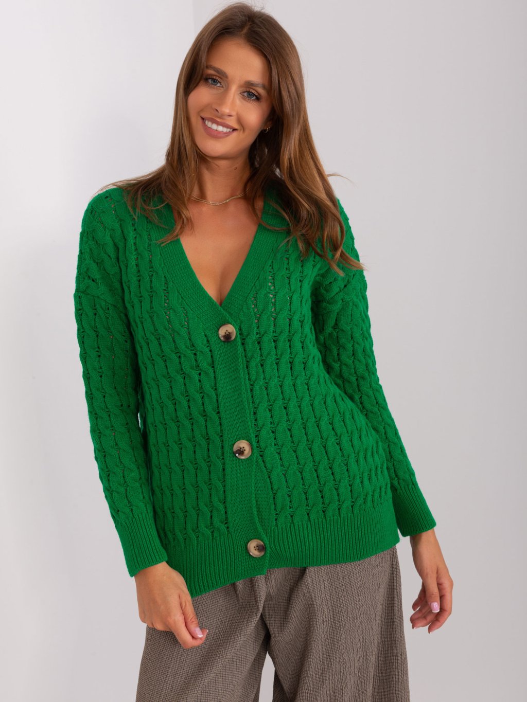 Tmavozelený sveter na gombíky