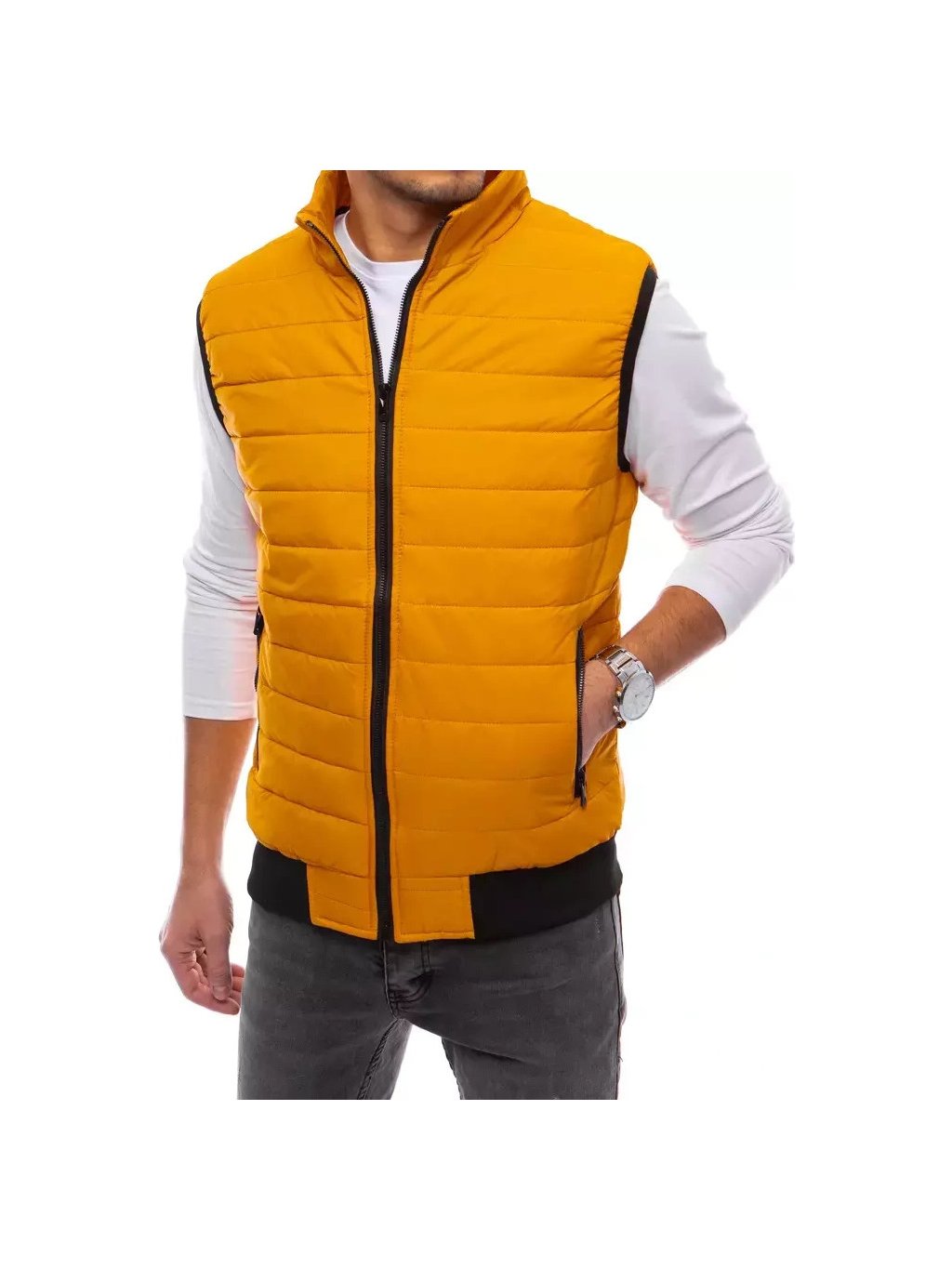 Tmavožltá pánska prešívaná vesta