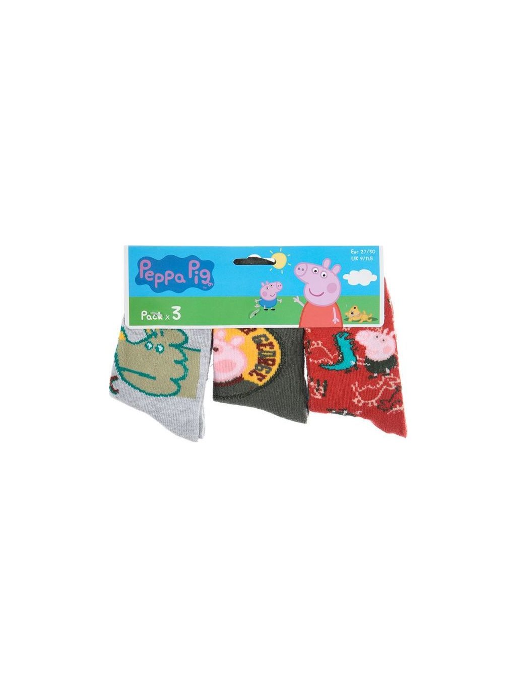 Trojbalenie ponožiek Peppa George - khaki, červená, sivá
