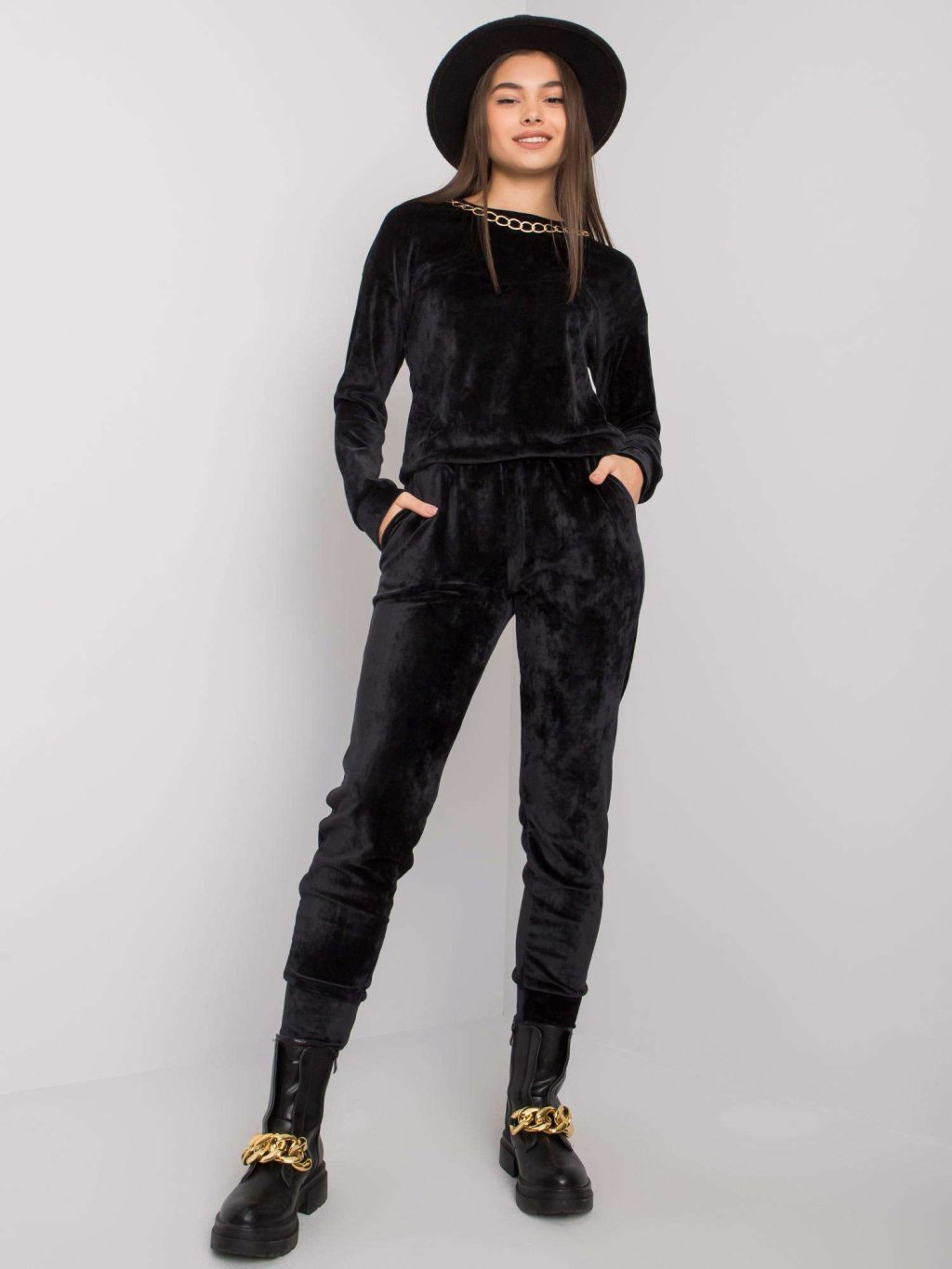 Velúrová súprava s ozdobnou retiazkou - čierna