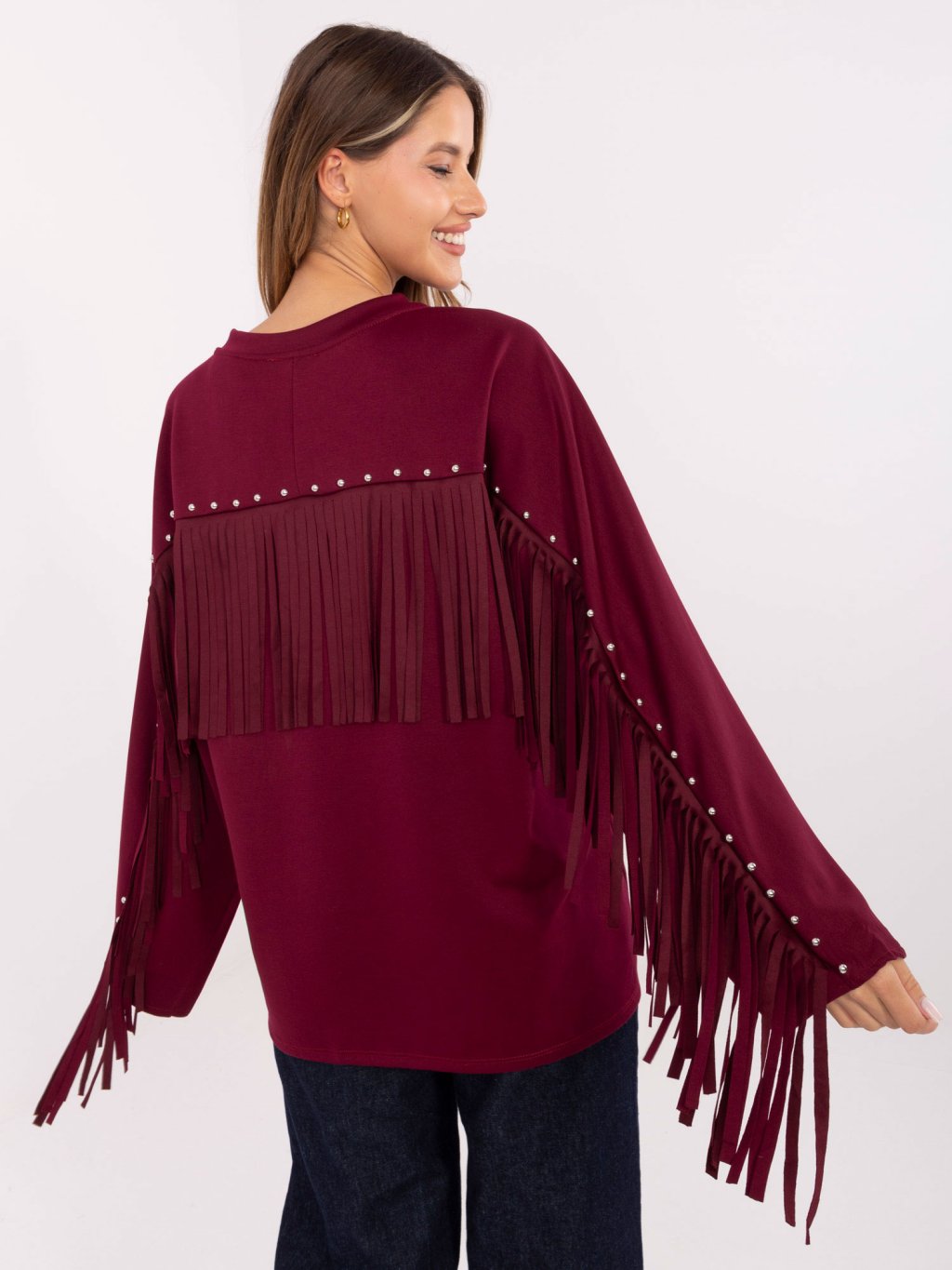 Vínová dámska viskózová mikina so strapcami