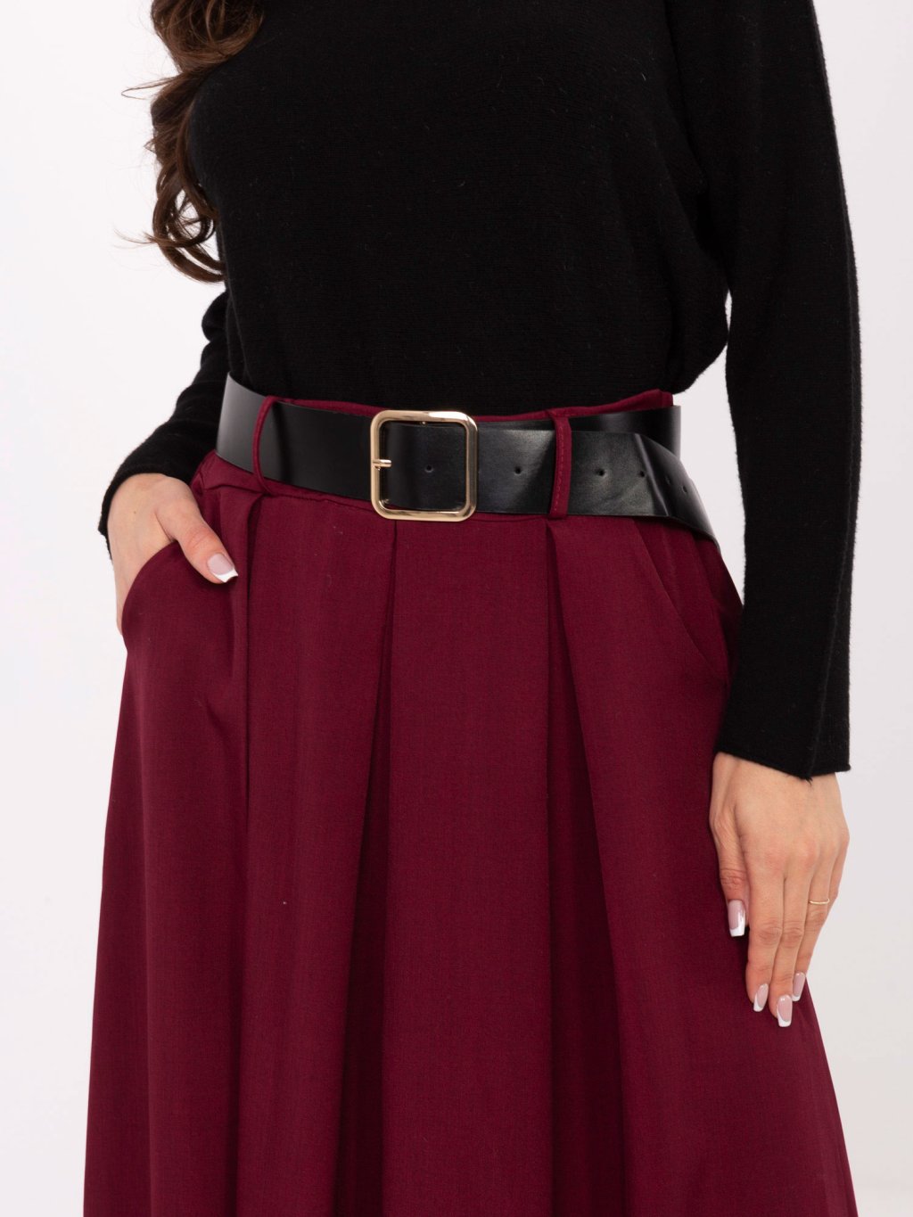 Vínová skladaná viskózová sukňa