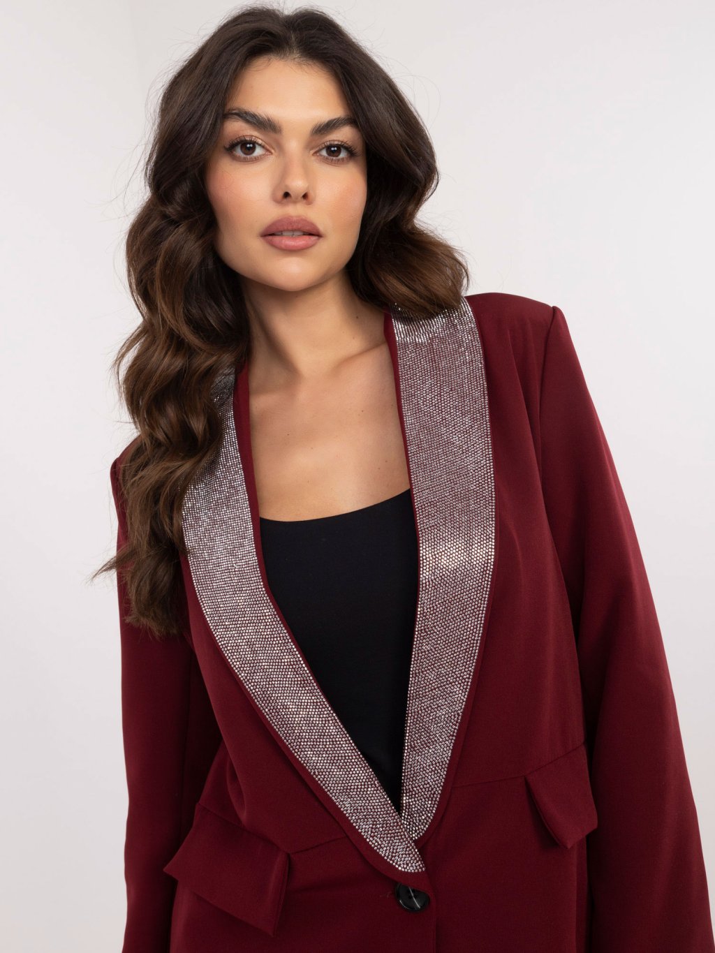 Vínové dámske sako s ramennými vypchávkami
