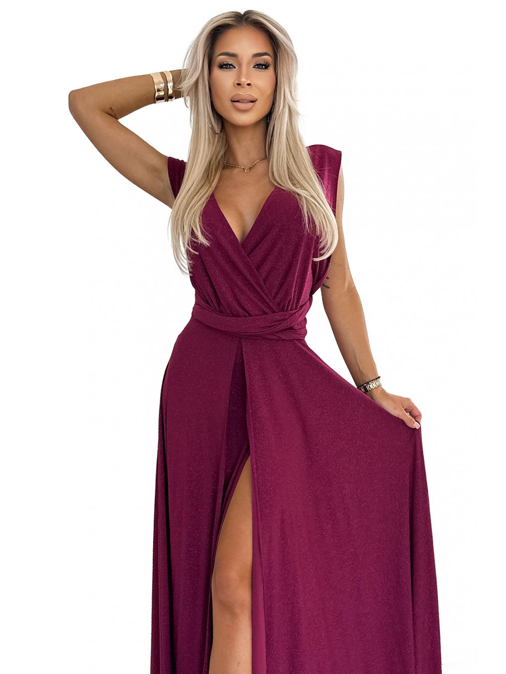 Vínové maxi šaty s viazaním na mnoho spôsobov