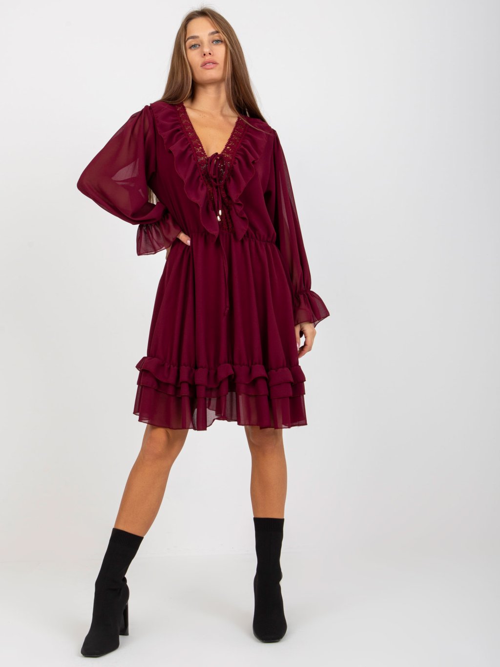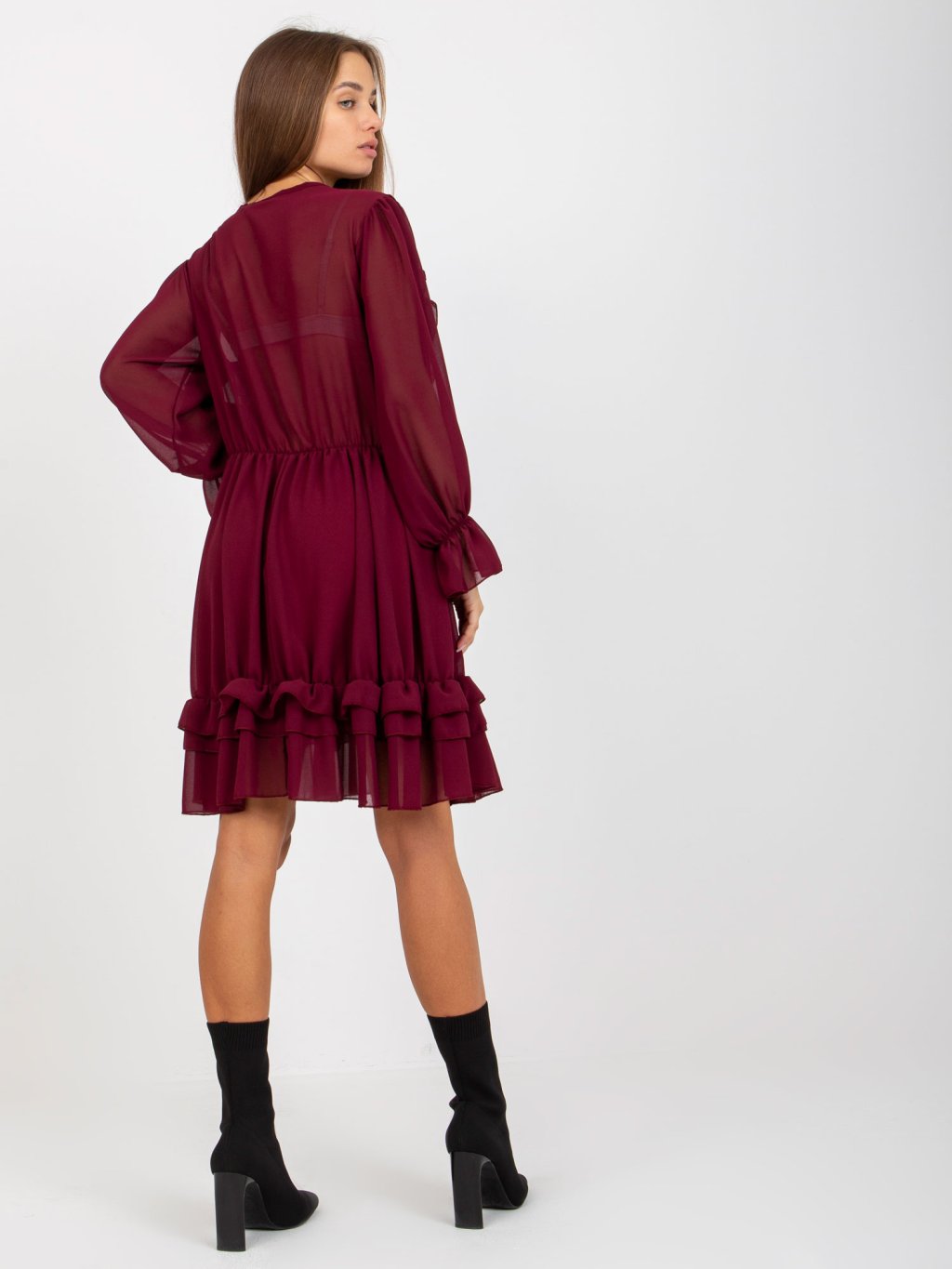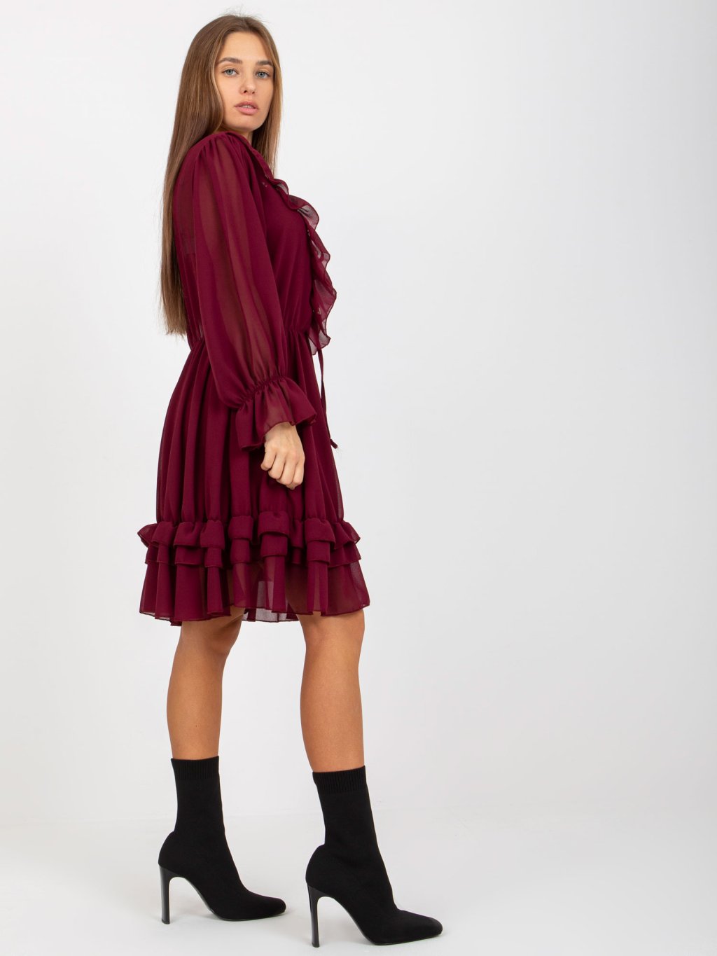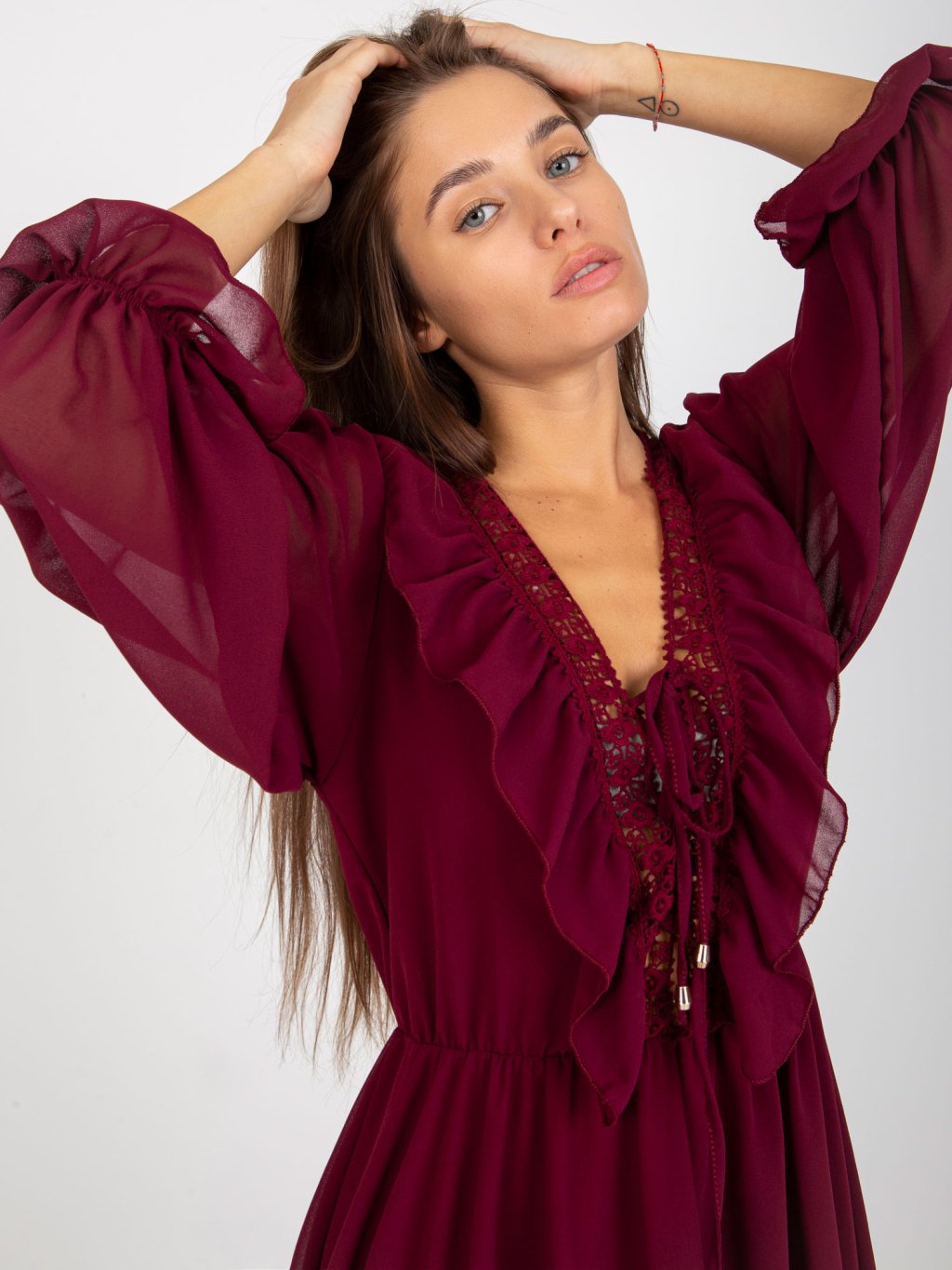 Modelka na obrázkoch je vysoká 163 cm, obvod cez prsia má 86 cm, obvod pása 56 cm a cez boky 88 cm.