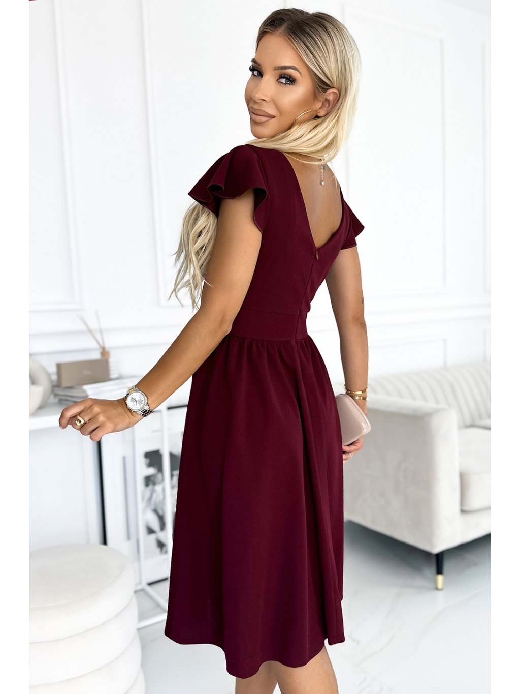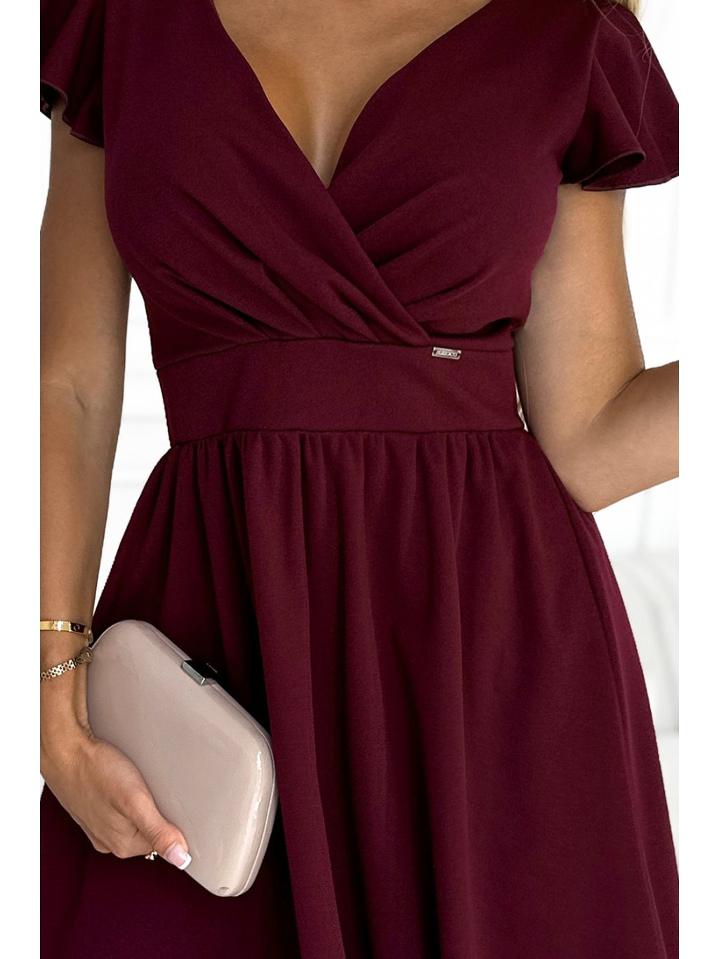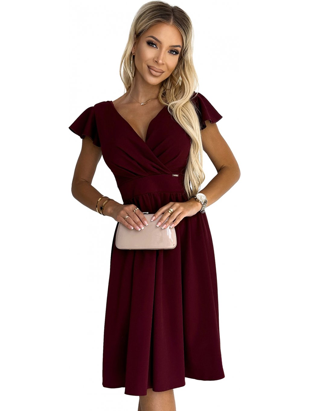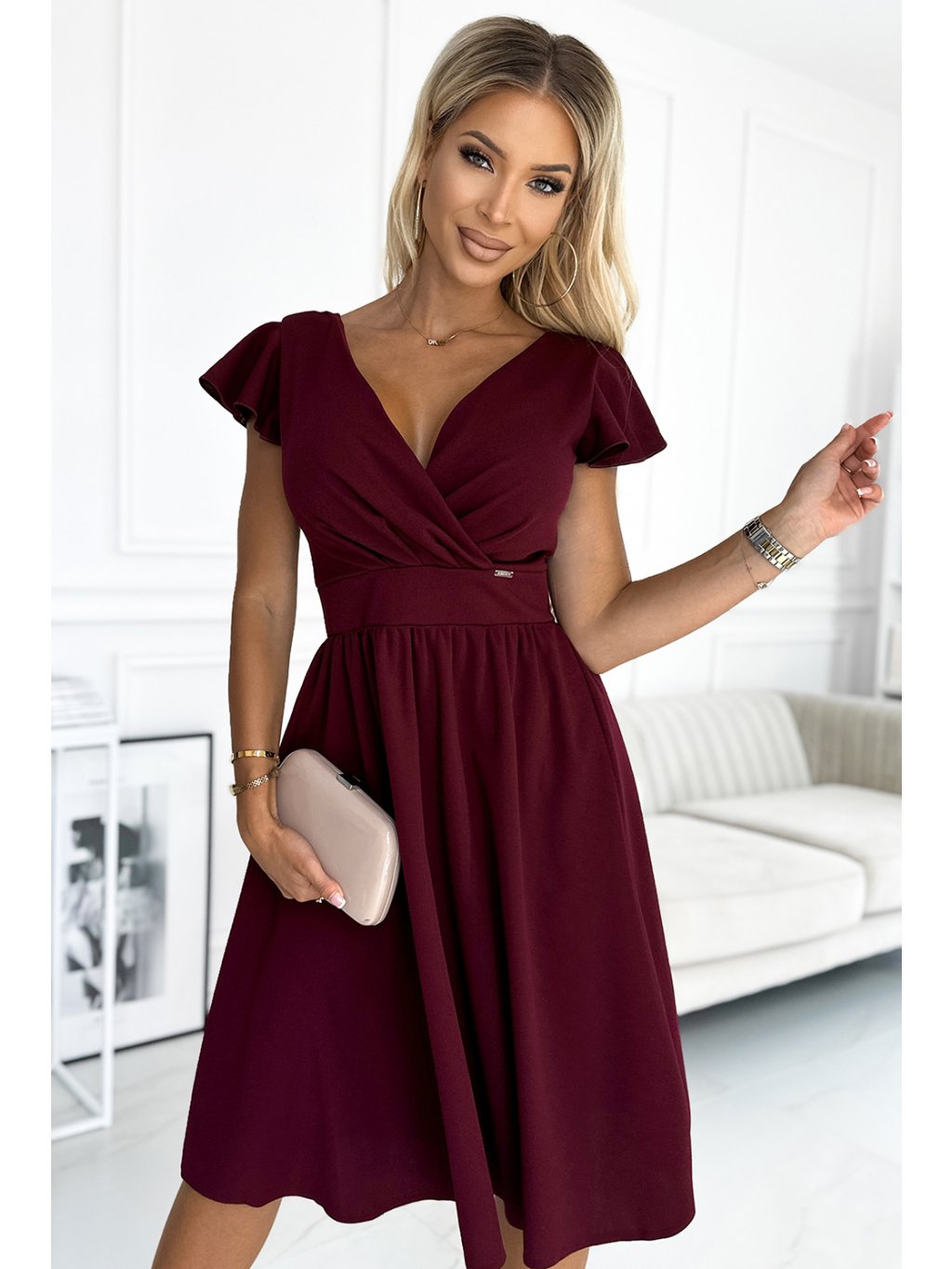 Vínové šaty s výstrihom a krátkym rukávom MATYLDA