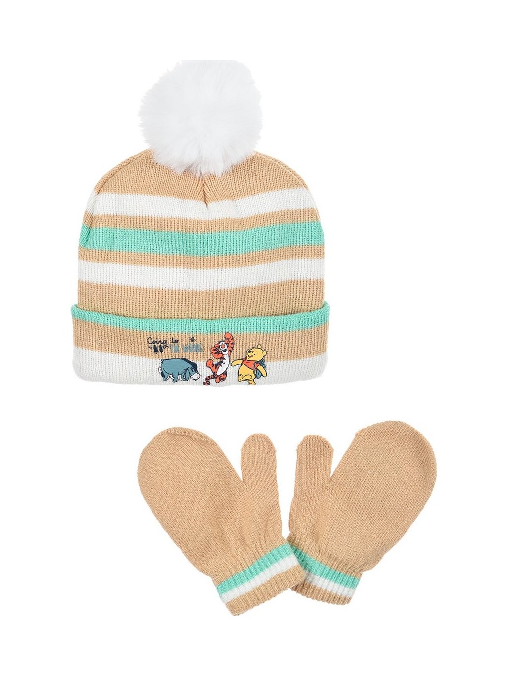 Winnie the Pooh béžovo-biela pruhovaná čiapka s rukavicami