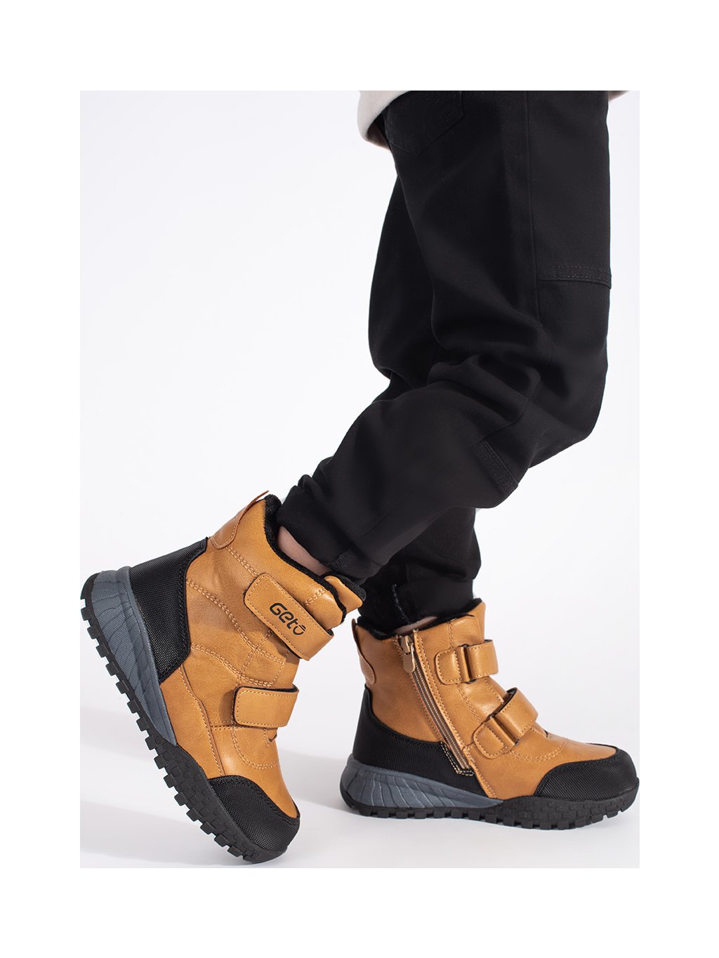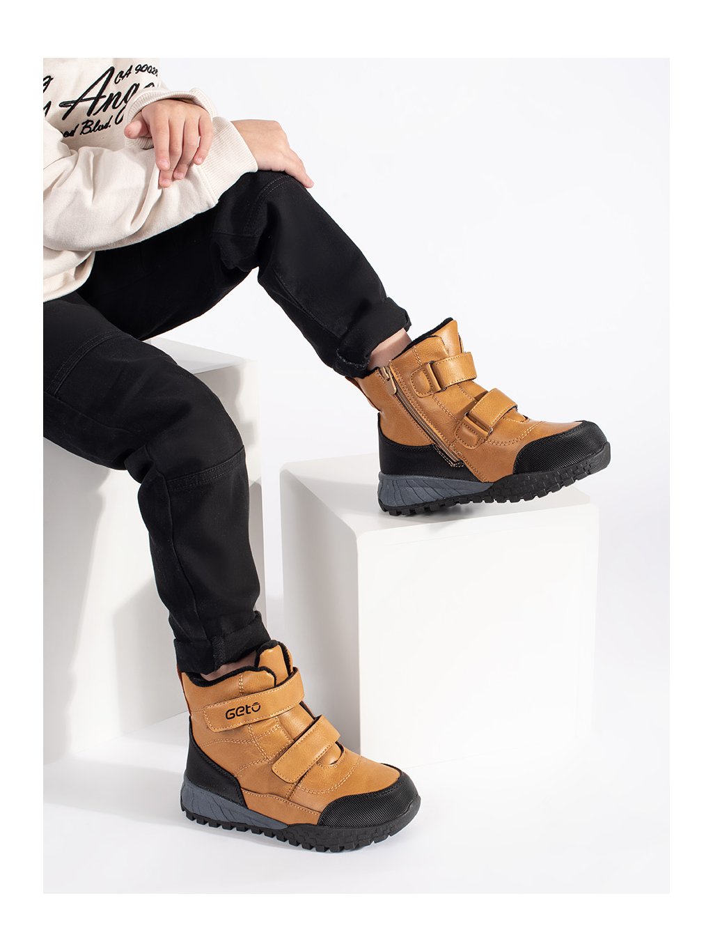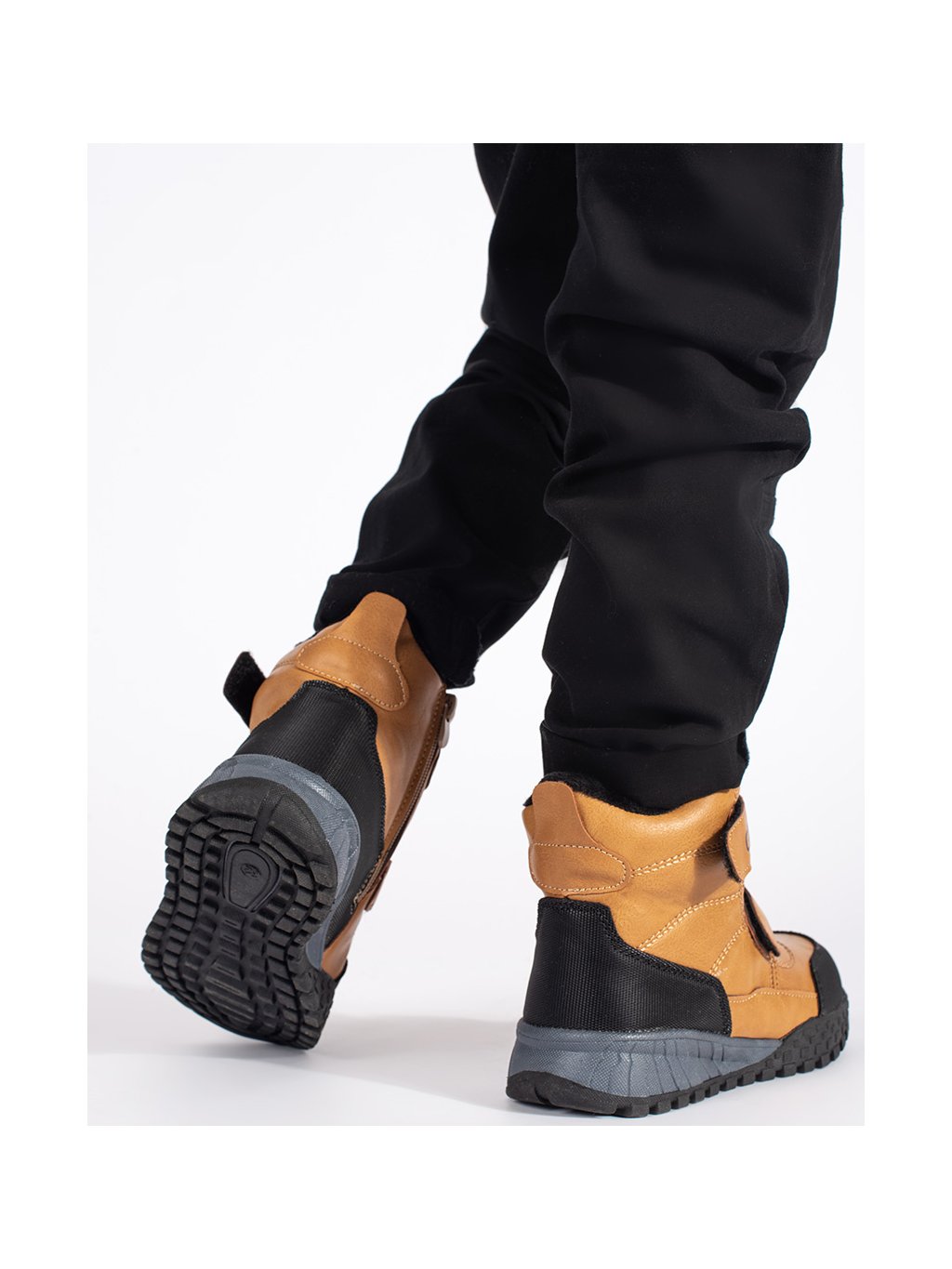 Zateplené chlapčenské camel členkové topánky na suchý zips