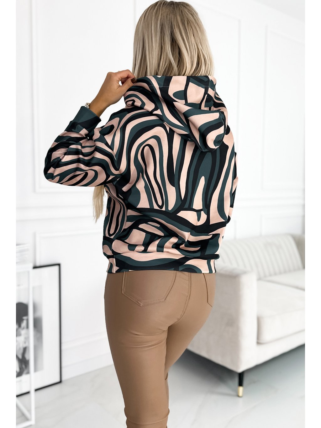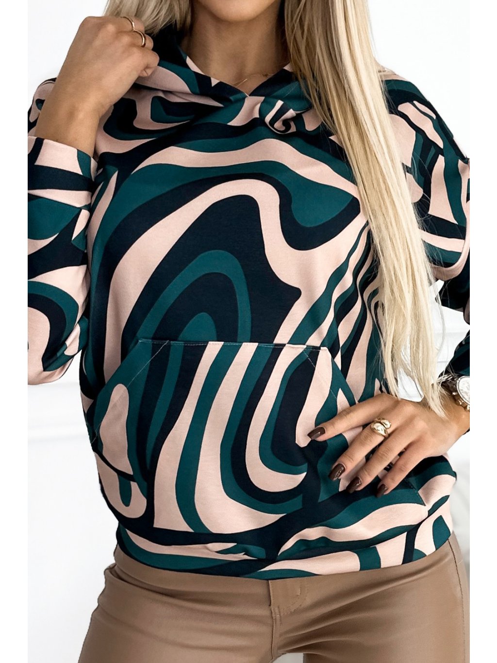 Zeleno-béžová vzorovaná mikina s kapucňou a klokaním vreckom JETTA