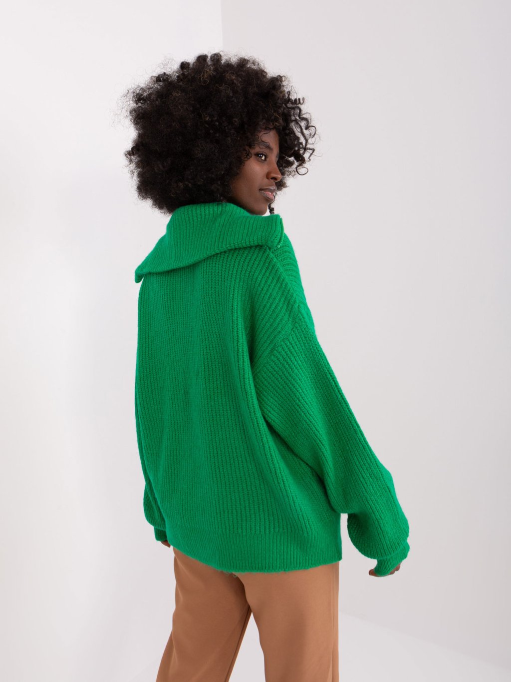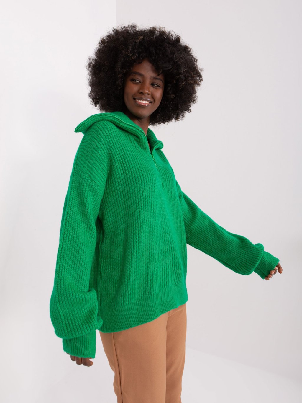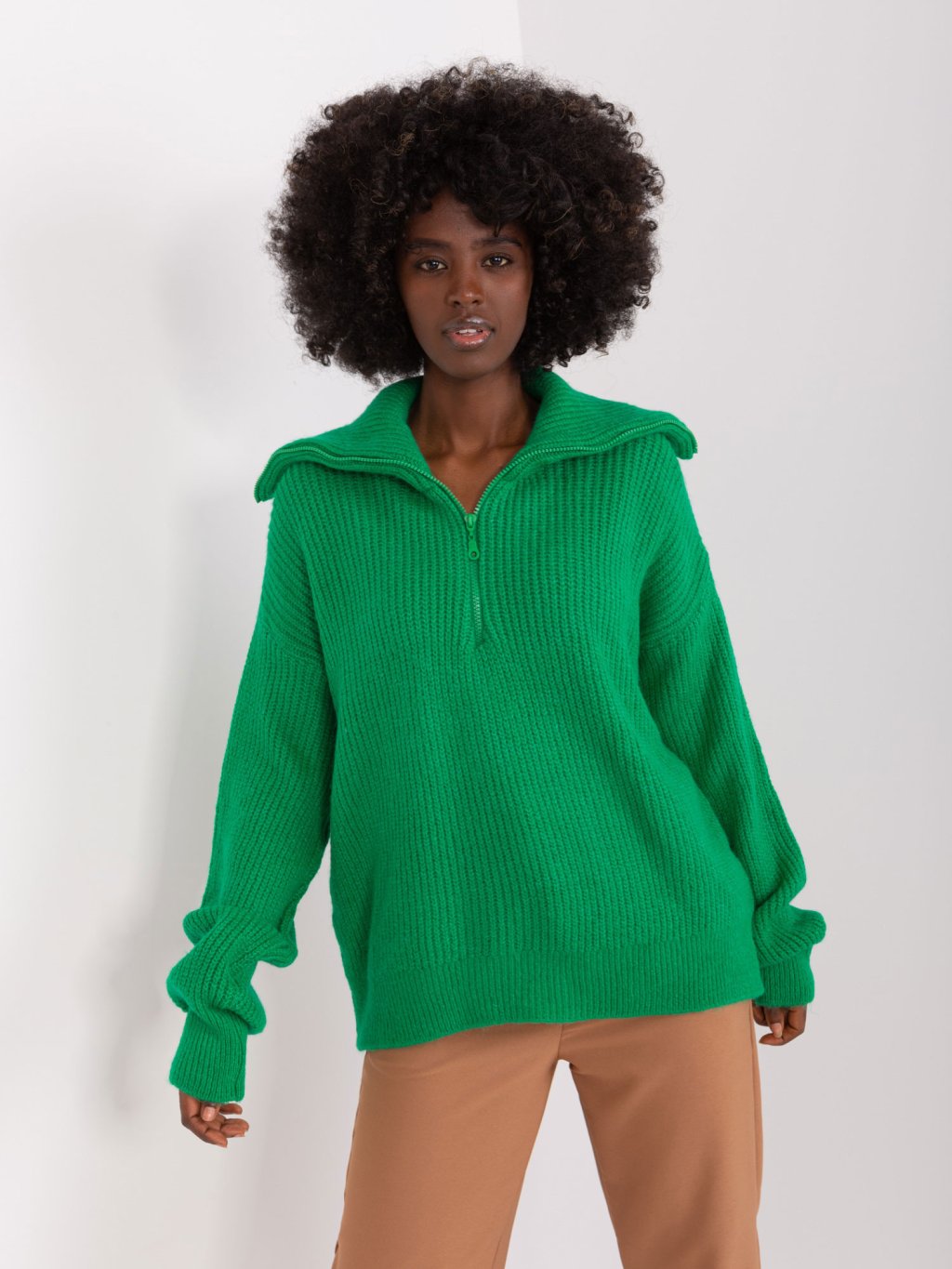 Zelený sveter s rolákom na zips
