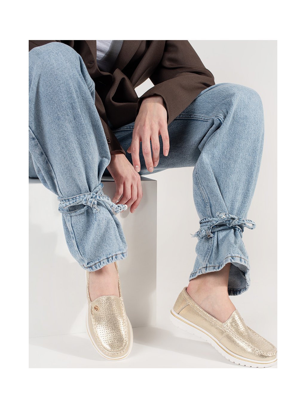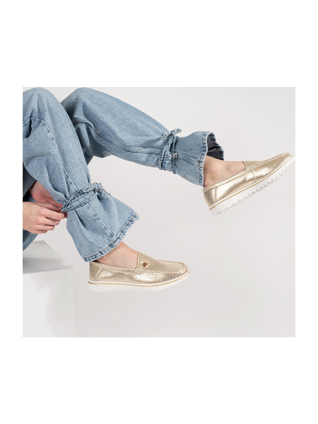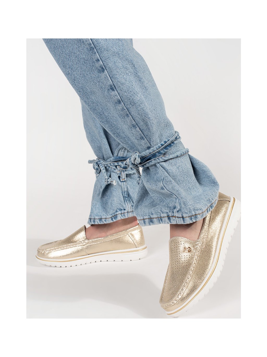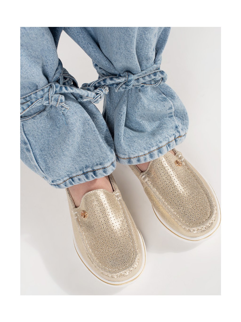 Zlaté mokasíny z prírodnej kože